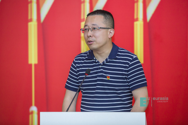 优秀共产党员学生代表张瑞超从勇做新时代奋进者、加强理论学习提升政治觉悟、强化责任担当等三个方面讲述了发挥党员先锋作用、融入实现中华民族伟大复兴中国梦的做法与实践。