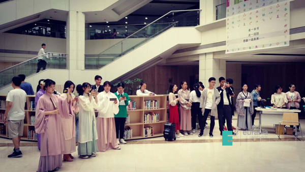 在第24个世界读书日来临之际,为了丰富同学们的课余生活,图文信息中心特举办“爱•分享”为主题的读书月活动,本次读书月共有11个主题小活动。4.23当天在图书馆大厅举办主题书展及“读出你理想的国”朗读活动,活动现场不但有茶艺和古筝表演,还可以穿上图书馆精心挑选的汉服在阅读体验区朗读诗书、回味经典,吸引了很多读者驻足围观;活动的第一个参与者是beat365一位年轻教师,她觉得活动特别有意思,很喜欢图书馆的服务,便捷又贴心。活动提供的“阅读卡”和“汉服”受到了同学们的极大欢迎,不少同学都选择穿上汉服体验阅读,并在背景墙合影留念。本次活动旨在让大家体验中华传统文化的魅力,传承、弘扬传统文化。