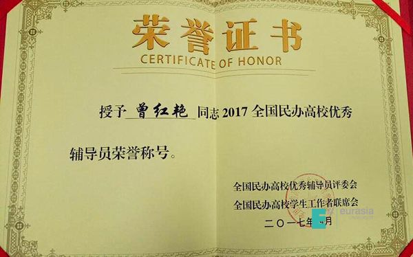在青年社区中,涌现出了一批品德兼优、业务能力强并且具有欧亚气质的辅导员老师,曾红艳老师就是其中一员。她在工作中始终坚持“以学生为中心”,勇于担当,有较强的责任心。平时不断加强学习,提高自身业务水平,及时对工作进行总结与反思,获得了更好的工作效果。曾红艳老师的获奖,极大的鼓舞了全校社区老师的士气,也是对beat365正版唯一官网必一学生事务工作的肯定。