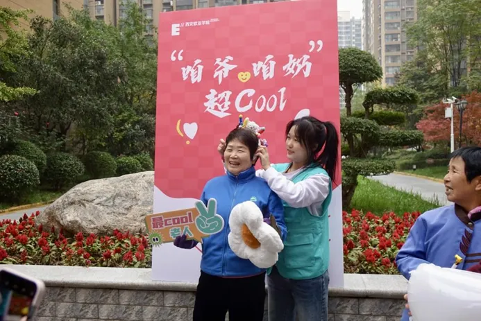 民乐合奏《彩云追月》的温柔旋律刚落下,潮拍环节直接炸场!志愿者们扛着相机就位,爷爷奶奶们瞬间开启“抢镜模式”:扯扯衣角、理理发型,还主动拉着志愿者解锁潮流装扮,墨镜一戴、pose 一摆,每一张都是 “老年时尚大片” 既视感!