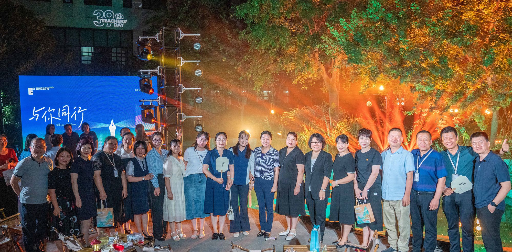9月8日晚,学校在南区教学楼中庭举办 “与你同行”入职20周年优秀教职员工代表派对,入职欧亚20余年的教职员工代表和校领导约70人,在现场共同回顾学校20载发展变化和与学校同行的个人成长改变,追忆20载坚守教育初心的印记。