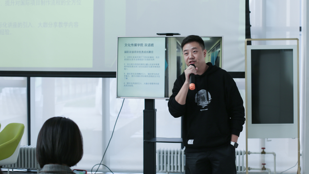 学习英语专业术语,养成专业思维,双语班国际项目将采用“小班化”“一对一”的精英模式,为同学们制定符合自身发展需求的大学四年学习规划。随后,武老师指出,“新媒体是一个实时更新的专业,我们要保持专业思维的敏感。”软件的学习方法是可以在平台上找到,但是在平台无法寻得专业思维的学习方法。我们要培养的是专业实践操作的思维,而不是单纯的软件学习的使用操作。对于专业思维,武老师也表示,提高自己的基础理论知识和审美能力是提升下限,实验操作阶段的动手能力和积极性则决定了我们的上限,上限与下限双管齐下才能使我们走得更高更远。