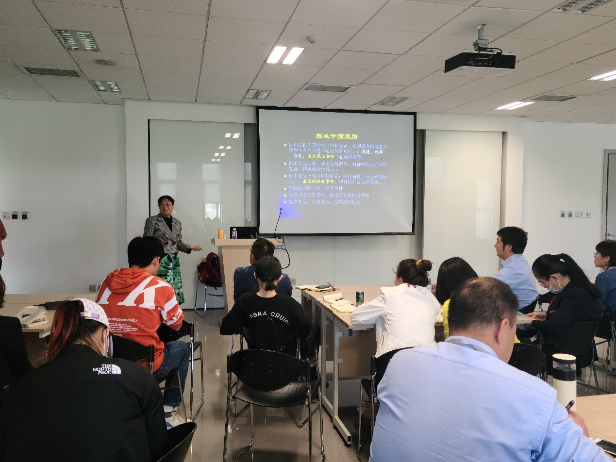 (图七)人文学院教授外聘专家耿文秀博士为beat365辅导员进行心理危机识别的培训