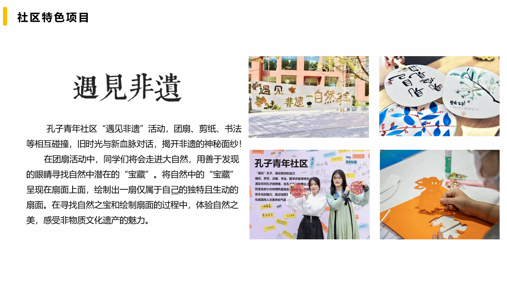 分党委围绕学校育人目标,以优秀传统文化为切入点,搭建非正式学习平台,优化非正式学习活动。先后组织开展 “国学讲堂”“诗词大会”“遇见文化展”等社区特色活动,激发学生对优秀传统文化的兴趣,增强文化认同,将“四个自信”转化成青年一代实现中国梦的强大精神内核。其中诗词大会获2023年度“学习强国”同学汇人气作品。