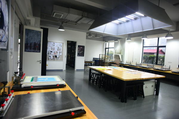 工作室以木板画、丝网等印刷设计为主。教师队伍通过多年教学实验,已近积累形成了完善的教材与教学实习课程体系,采用课堂讲授、案例演示、项目实习和专题讲座等多种方式,将理论与实践紧密结合。工作室以实验教学为主体,采用年级制与工作室制结合的教学方式,提高教学水平和人才培养质量。在教学的形式上版画工作室采用开放式教学,课题的实际具有一定的针对性。具有一定版画教学经验的老师负责本专业课程的设计、教学计划、教学大纲撰写及实施。