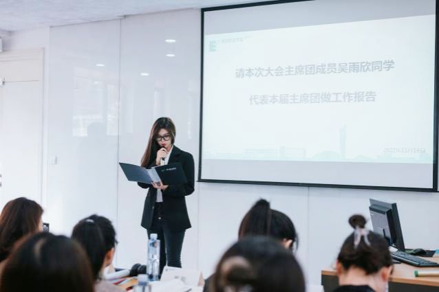 (图八)吴雨欣代表社区学生会主席团作工作报告
