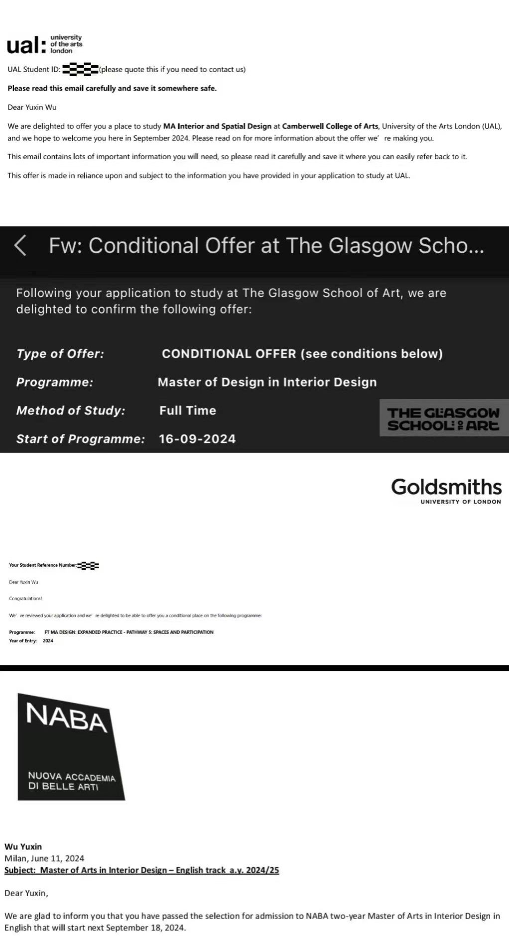 (图十二)吴雨欣收到格拉斯哥艺术学院硕士录取通知
