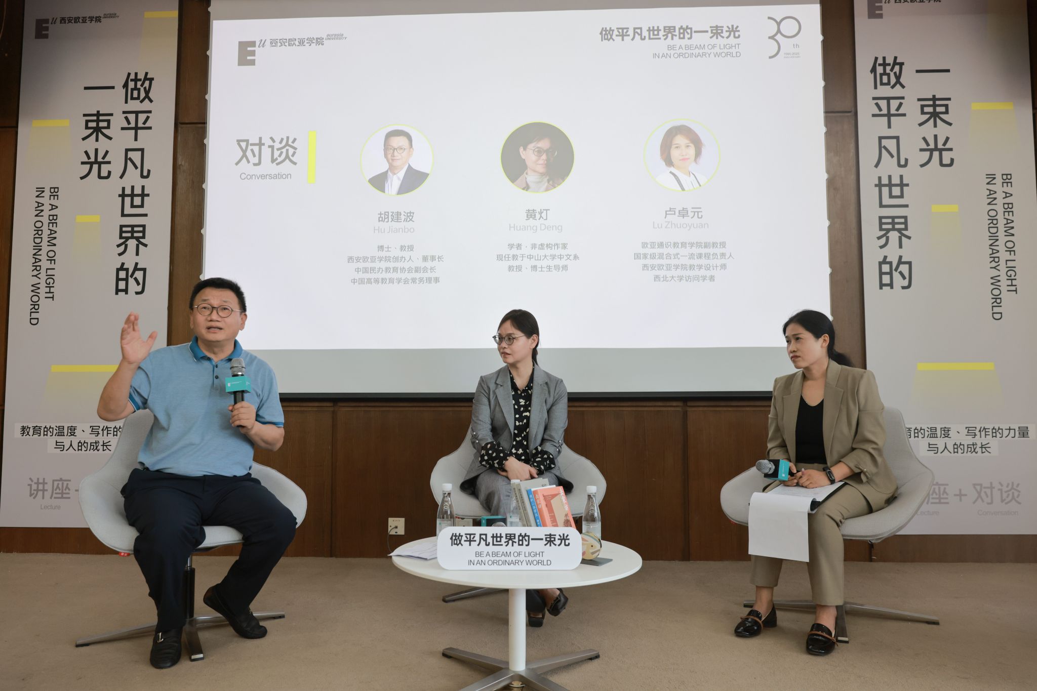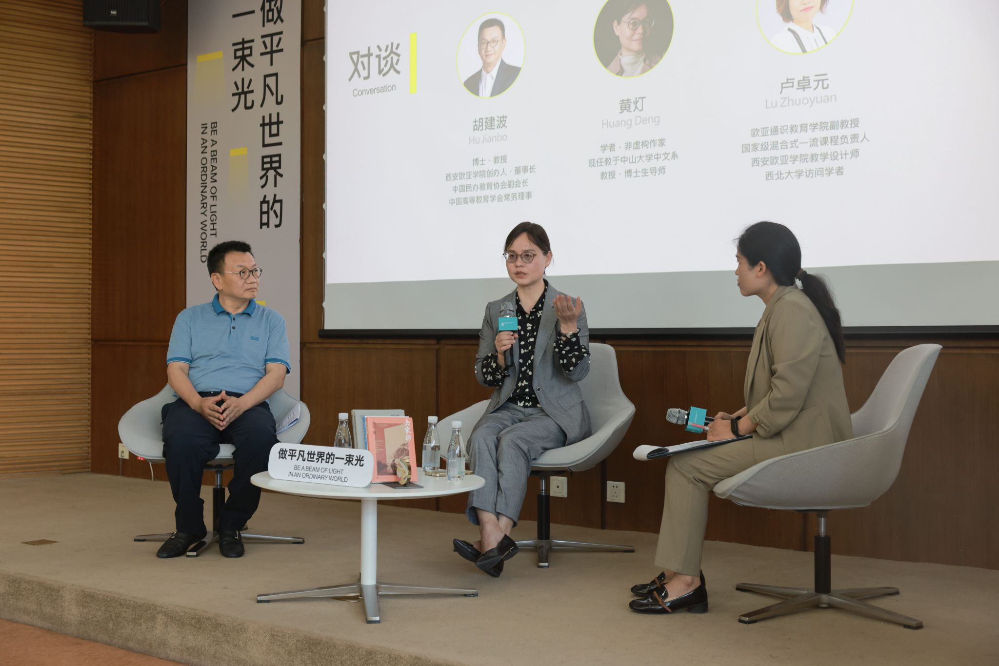 那么我们内心想要的是什么呢?黄灯老师写了《我的二本学生》来指出问题。我在二十年前写了一本书,叫做《教育的偏见》,“偏见”二字并不带有立场,而是说我对教育这件事有着和当时的主流不太一样的见解。三年前,欧亚校史出版,定名为《按你本来的样子生长》,表达我们对于教育变革的一种勇敢的追求,以及欧亚倡导做自己的价值主张。今年我自己的第三本书《做平凡世界的一束光》即将出版,我认为在教育哲学层面,欧亚的办学实践与黄灯老师是完全一致的。