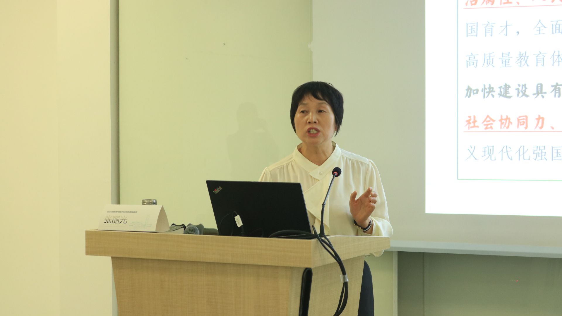 西安市长安区教育局教学研究室高级教师、陕西省教学能手、陕西省优秀教研员、陕西省基础教育科研先进个人、陕西省教育督导、西安市学科带头人、西安市兼职教研员张丽光以《唤醒自我学会对话,提高教育教学的思想性》为主题,结合《教育强国规划建设纲要(2024-2035)》中“教育属性”和教育特质”的要求,通过“一次旅游感悟”、“一页陕博日历”、“一次稚子追问”、“一次备课经历”、“一份读书感悟”五个故事,阐释了“对话教学”的基本主张和基本策略。启发教师由提高教育教学的思想性,走向提高生命的觉知。