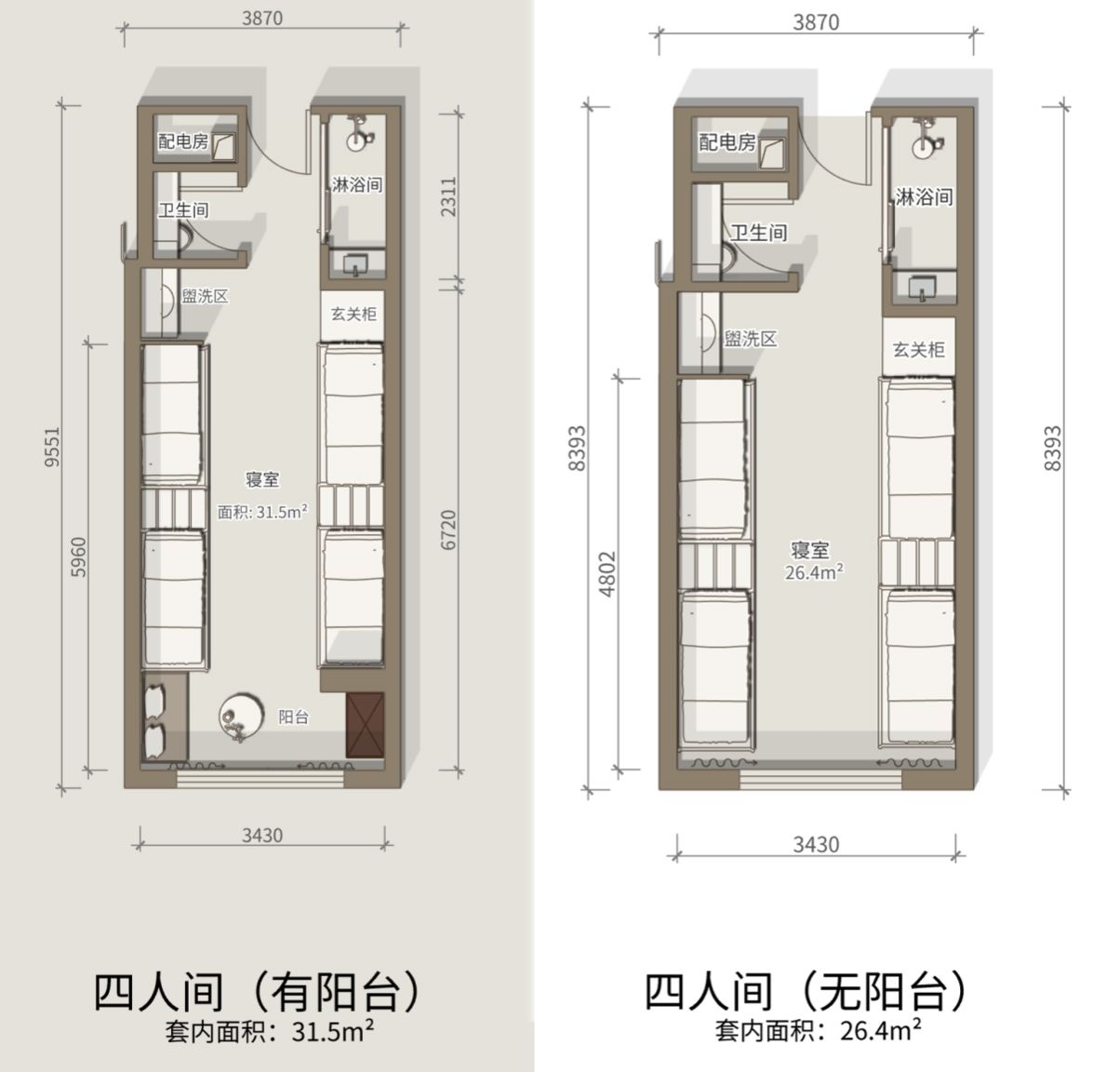 「春山里」4人间拥有带阳台和不带阳台两种户型