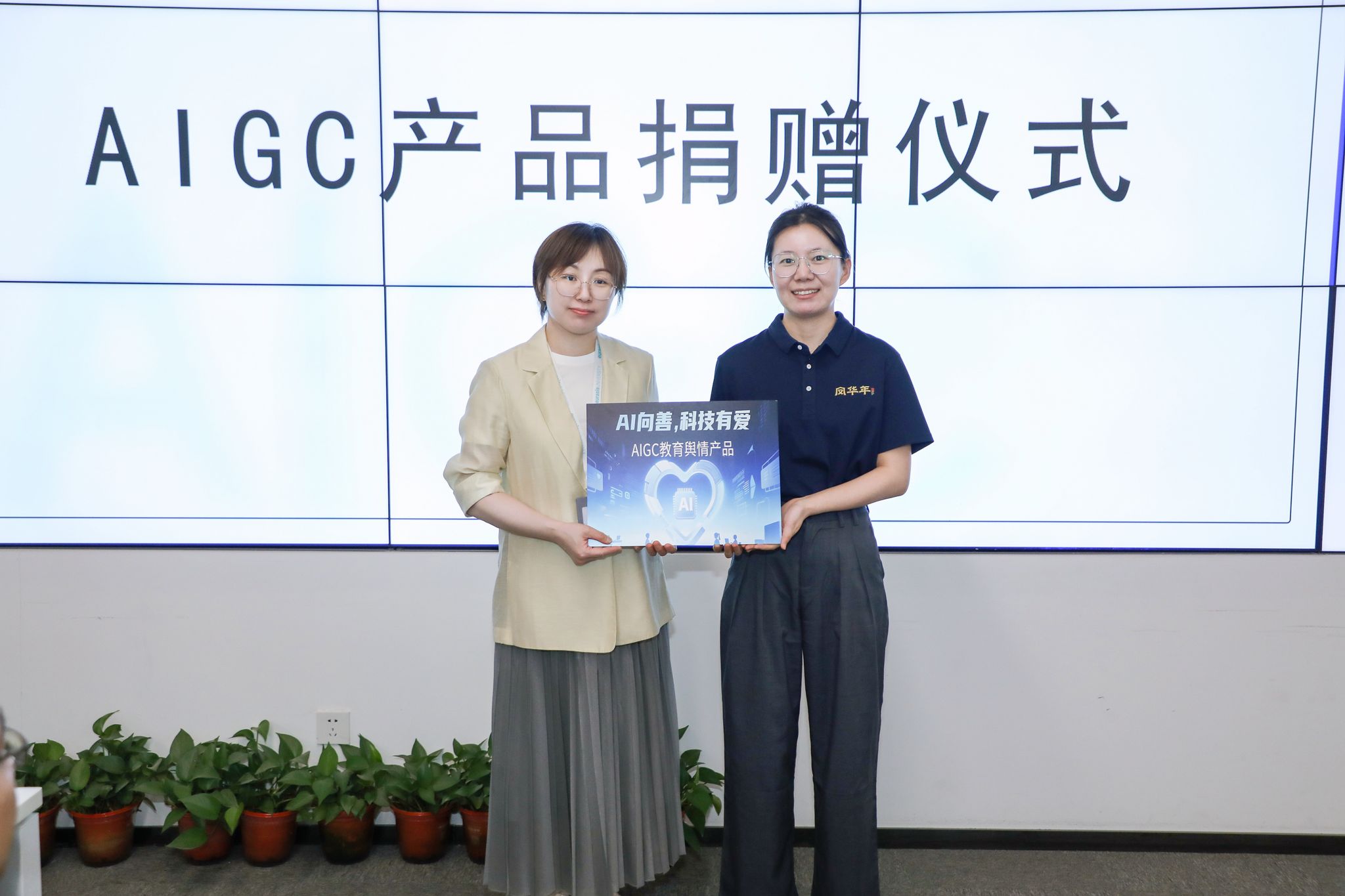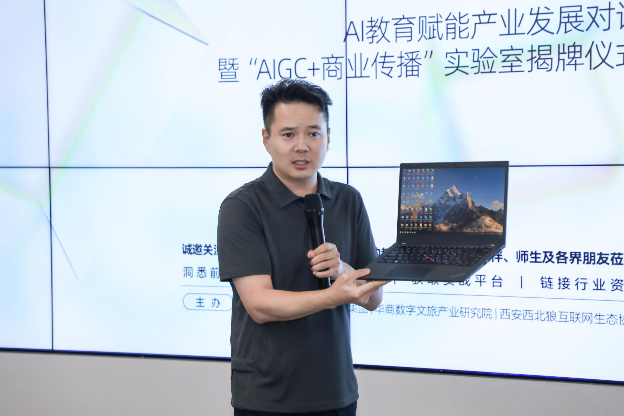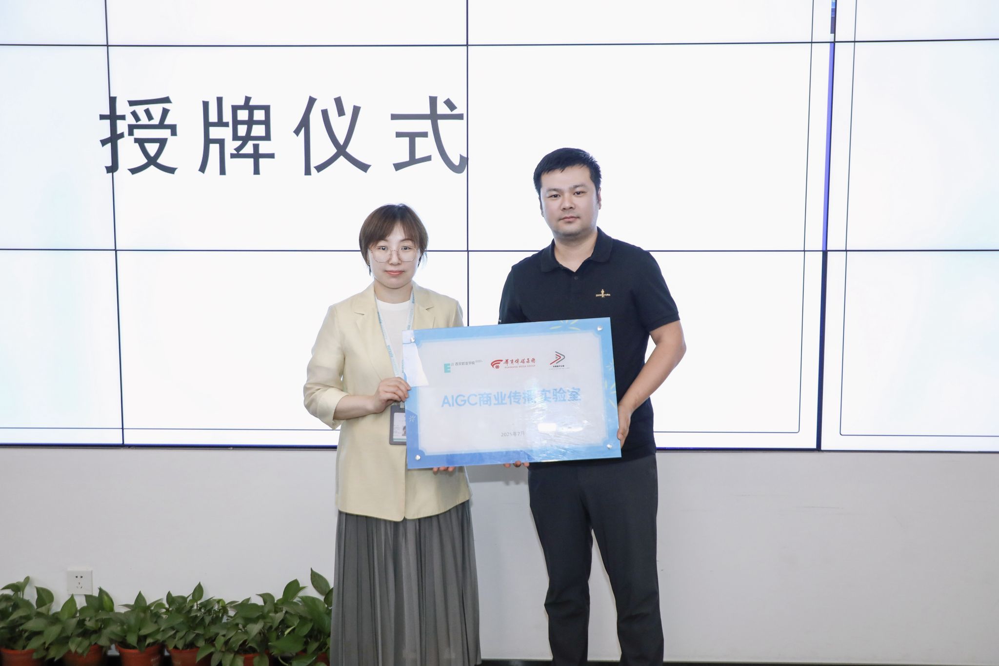 活动现场举行了华商数字文旅产业研究院与beat365正版唯一官网必一共建“AIGC+商业传播”实验室授牌仪式,华商数字文旅产业研究院副院长马广浩、文化传媒学院新闻学专业主理人徐思共同为实验室建立授牌。华商数字文旅产业研究院秘书长户文颖向文化传媒学院捐赠华商传媒AIGC教育舆情产品,旨在为师生提供先进的AI工具支持,助力教学与科研创新。
