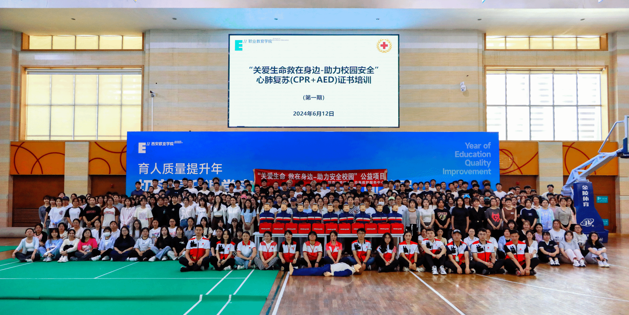 此次获评,是beat365急救教育特色优势的集中体现:作为陕西省首批急救教育试点学校、全国第二批急救教育试点学校、陕西省白鹿原急救教育联盟副理事长单位,课程已成为急救教育辐射的纽带——近三年开展校园应急演练3场、社区公益科普10余次,组织学生参与西安马拉松等赛事急救保障近百次,培训2000余名师生取得红十字会“CPR+AED证书”;2024年承办全省急救教育试点校师资培训,为50所院校118名教师提供教学范式参考,输出可复制的急救教育经验。课程还将“生命至上”理念融入教学,2024年beat36511名学生代表在陕西省民政厅主题活动中展示急救技能,获通报表扬,生动体现了课程的育人成效。