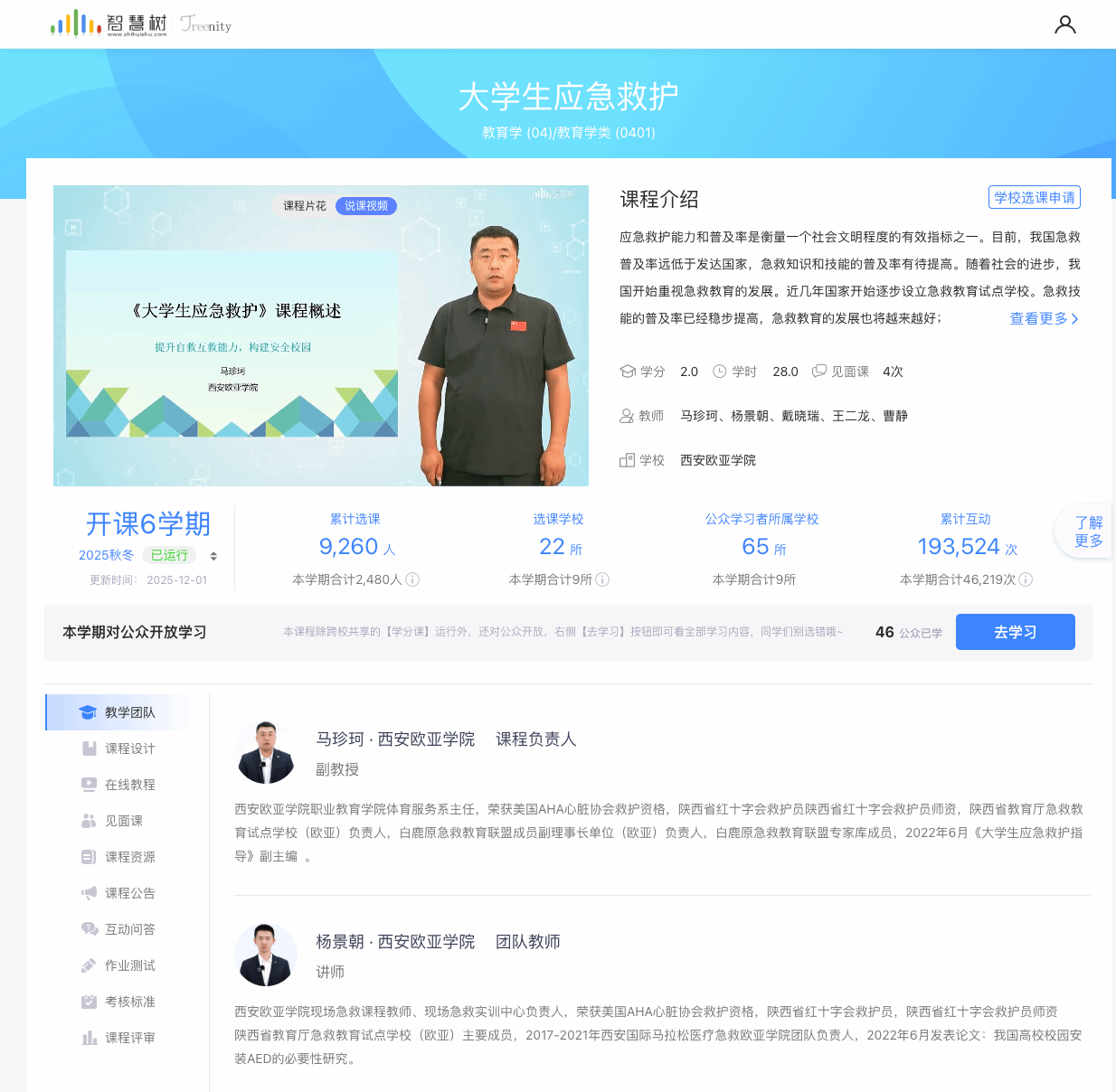 资源与师资积淀:编写副主编教材《大学生应急救护指导》(电子科技大学出版社),发表《我国高校校园安装AED的必要性研究》等教研论文;6名核心教师全部取得红十字会急救师资资格,2人获美国心脏协会(AHA)认证、2人获欧洲复苏委员会(ERC)导师资质,课程负责人马珍珂老师入选白鹿原急救教育联盟专家库、受聘为学习强国“学校急救教育”通讯员,为课程专业度筑牢根基。
