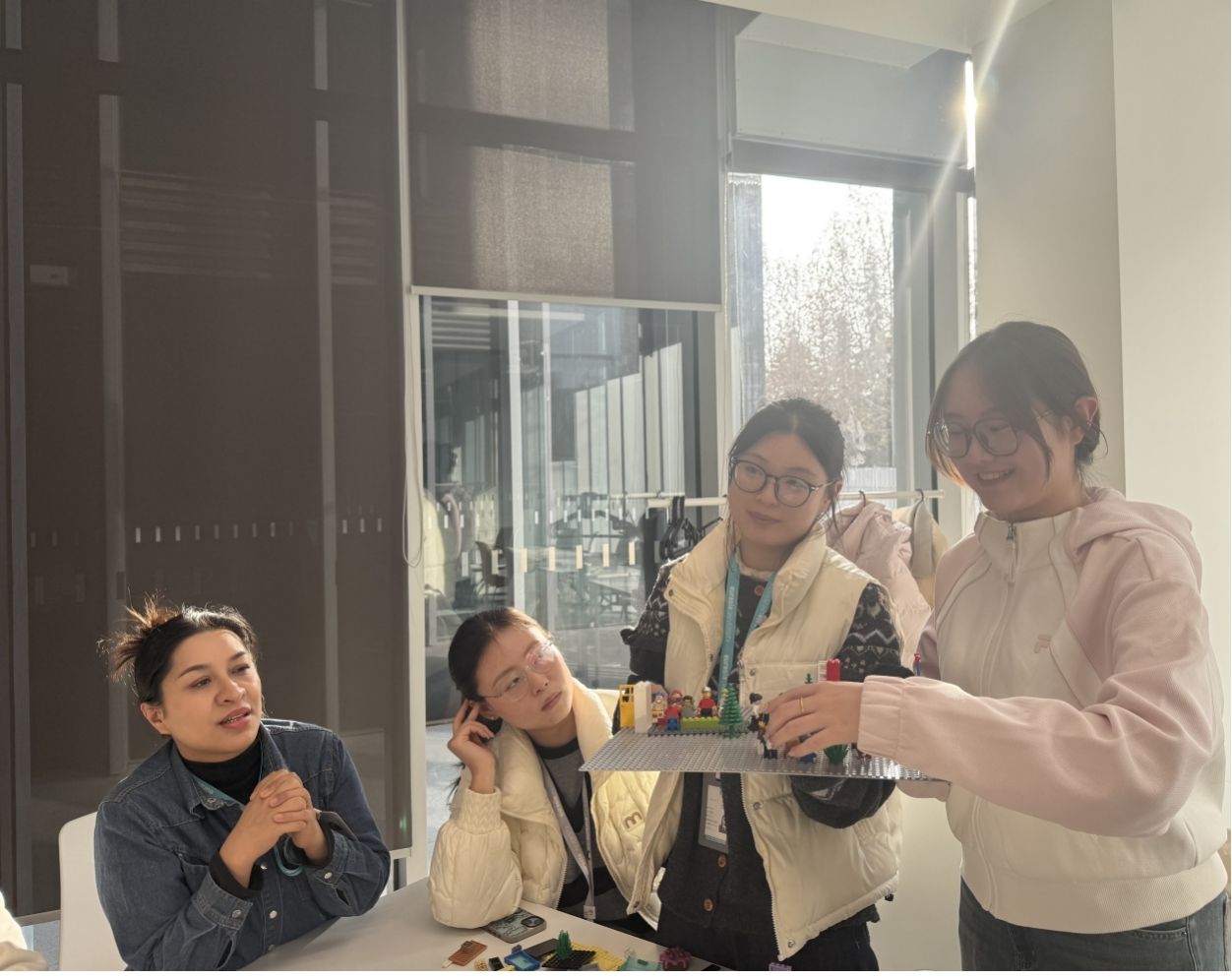 活动开始,武君蔚老师通过趣味破冰游戏快速拉平现场身份,让参与者在轻松氛围中建立信任联结。在核心探索环节,大家借助乐高积木搭建模型,将非具象的“沟通感受”转化为具体的“场景呈现”,并围绕“学生愿意持续沟通的关键瞬间”“沟通中易被忽视的细节”等主题展开深度分享。