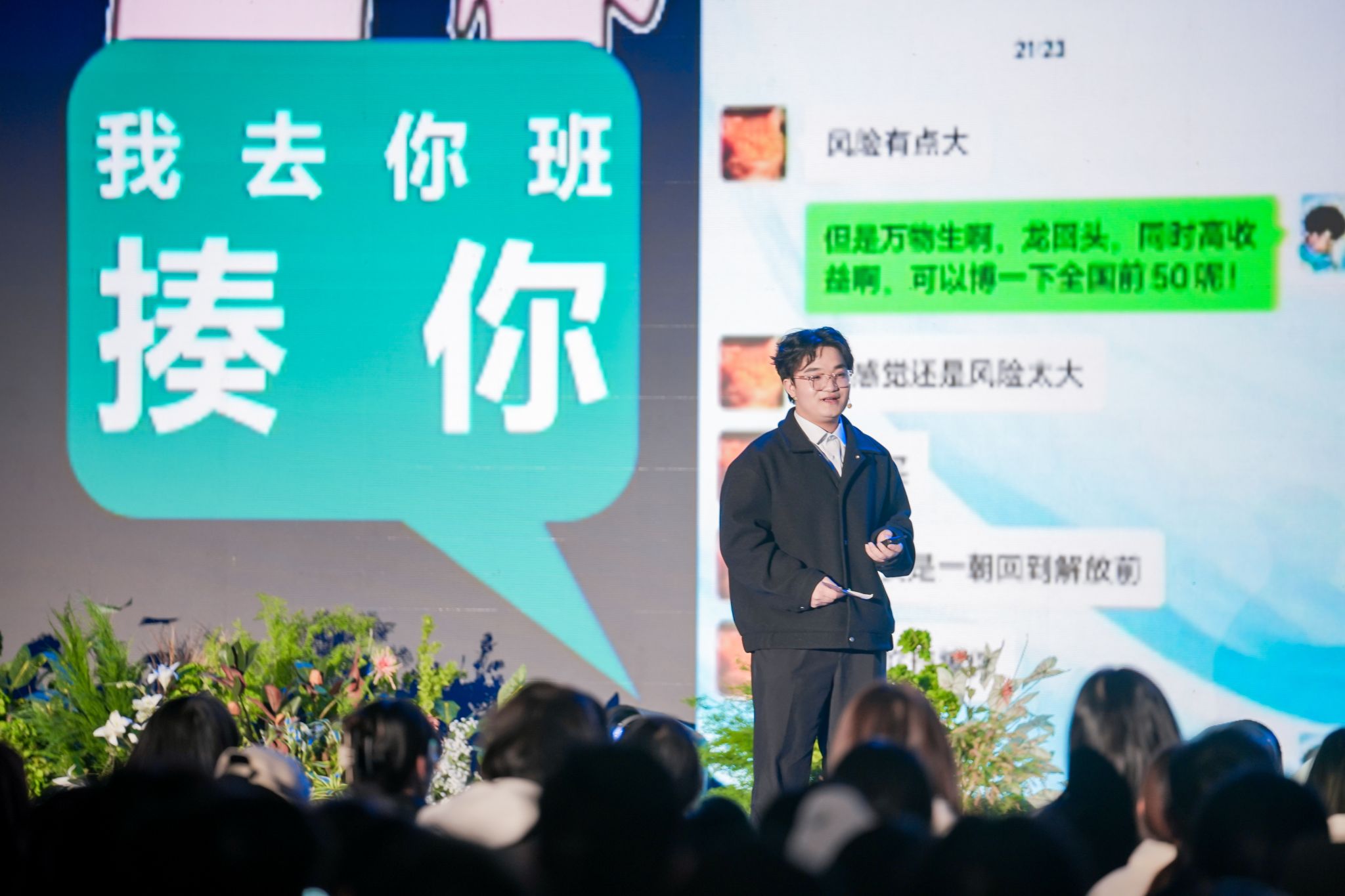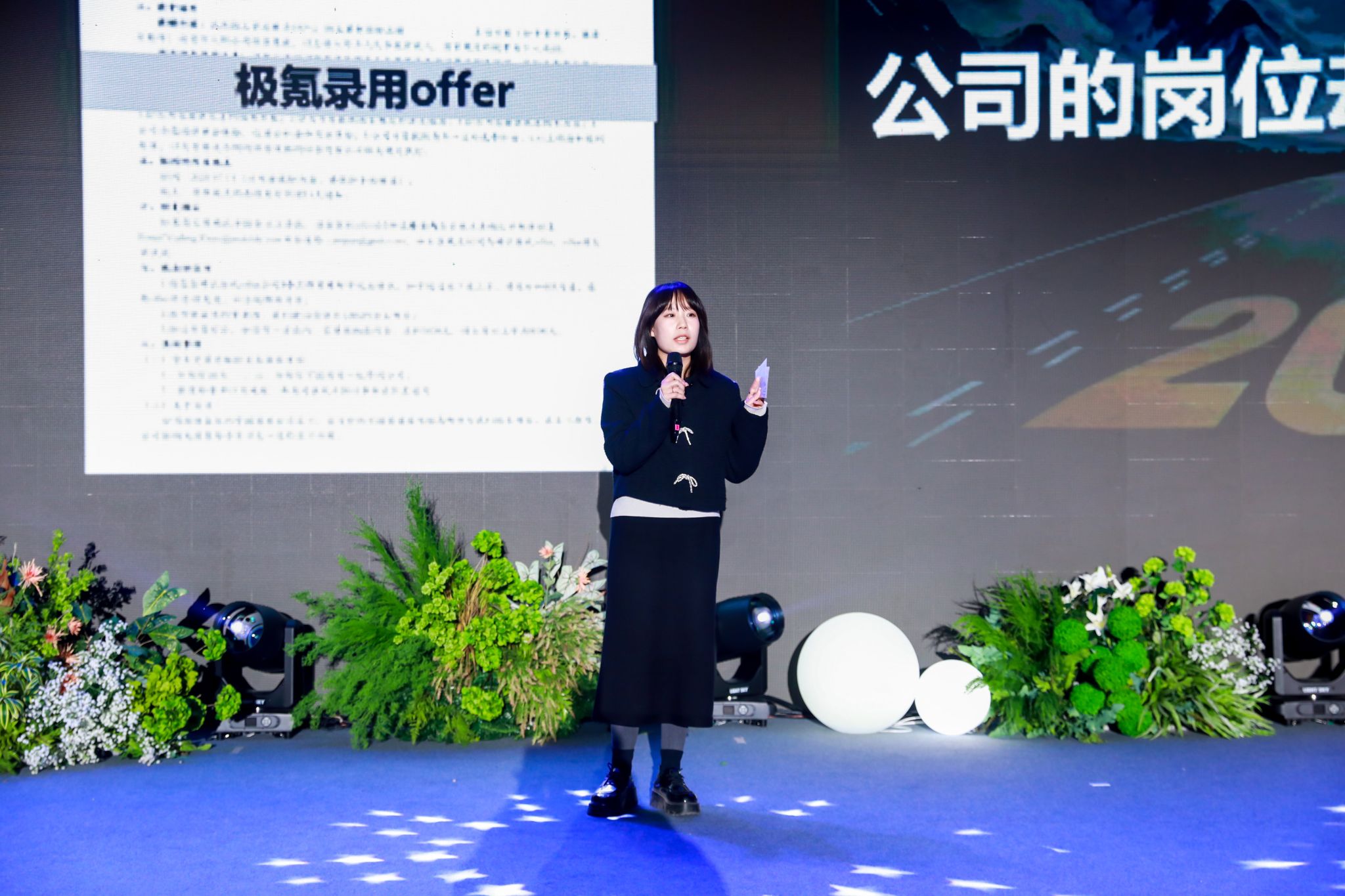 她是宋嘉佳,来自工商管理学院2021级市场营销专业。参加学生年度盛典前不久,她刚刚签约浙江极氪智能科技有限公司总部,是所在部门新招聘的5名员工中唯一的本科生。更令人惊喜的是,她在分享结束后,还意外收到了董事长胡建波发出的岗位邀约。