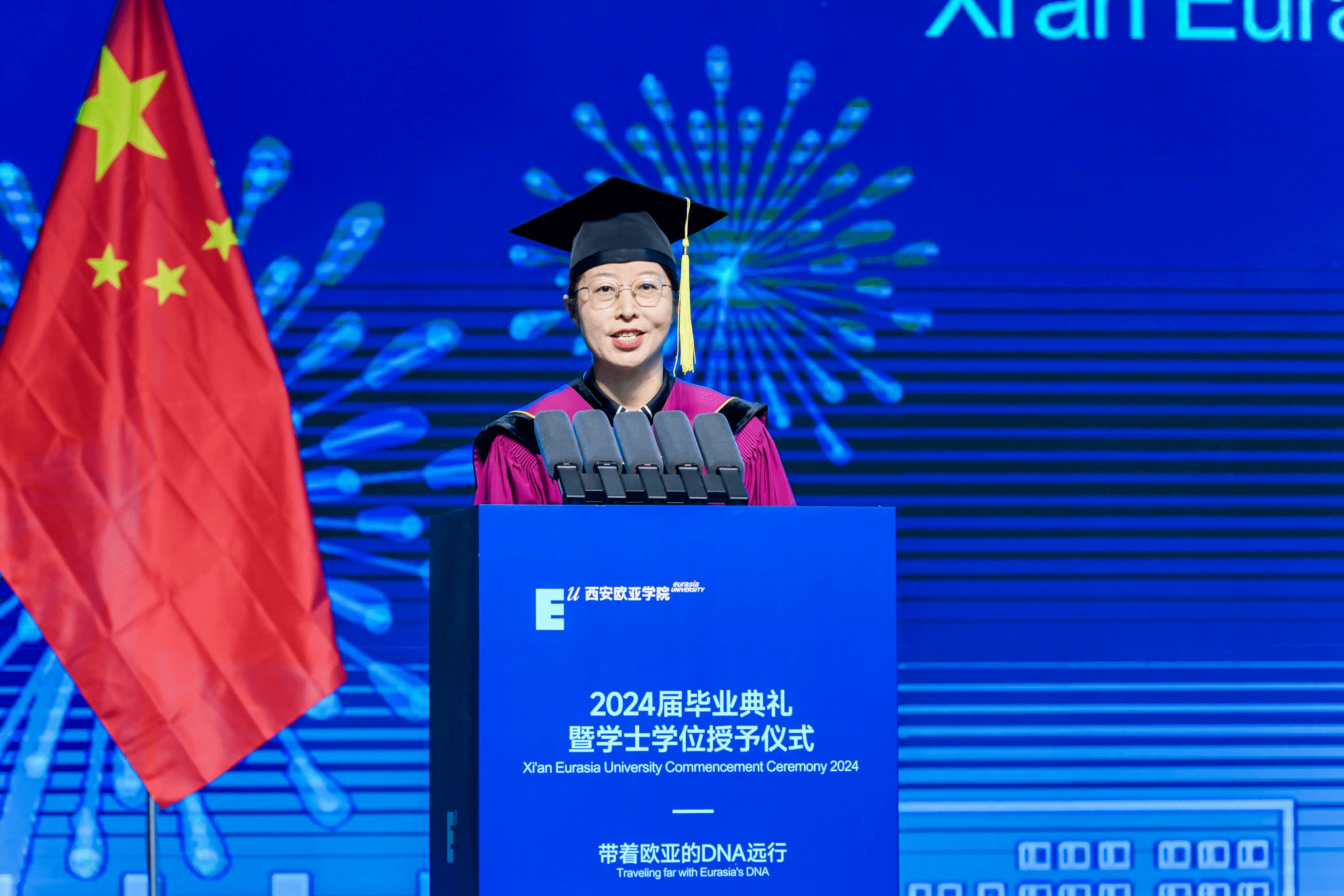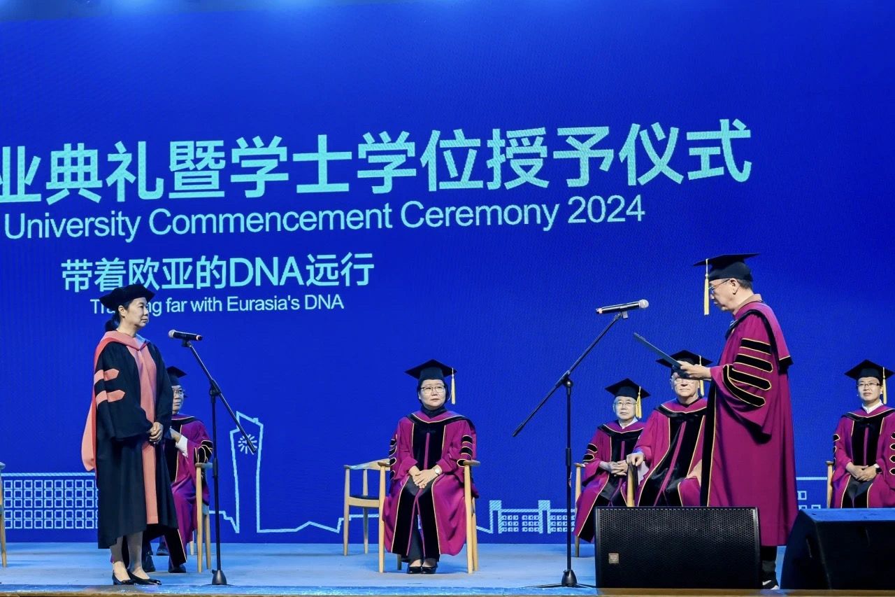 2024届优秀毕业生代表,人文教育学院、Ivy青年社区王梦乐同学在发言中说到:“欧亚,谢谢你!谢谢你‘和而不同’的校训教我兼容并蓄,谢谢你‘看到’每一个成长的个体,尊重我们按照本来的样子生长,谢谢你为我们营造了这样安全、优雅的校园空间和学习氛围,让我们能够专注学业,肆意成长。”