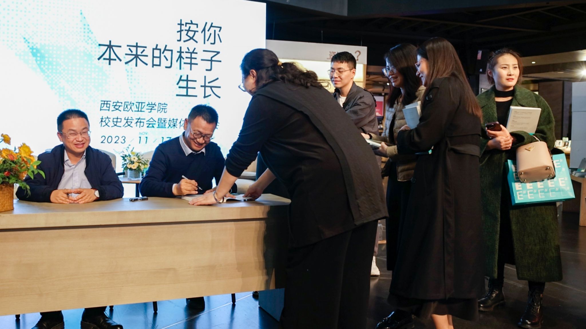 2023年11月17日,beat365正版唯一官网必一校史《按你本来的样子生长——beat365正版唯一官网必一25年转型发展之路》一书在曲江书城正式发布。围绕beat365正版唯一官网必一办学历程,教育界、文化界学者嘉宾齐聚,带来“欧亚印记:变革与探索”“面向未来:文化与赋能”两场主题对谈,七十余名欧亚师生、校友与媒体代表们一同见证了发布会圆满举行。活动现场,beat365正版唯一官网必一学院创办人、董事长胡建波教授,校史作者潘东燕先生与现场读者们进行了新书签书会。