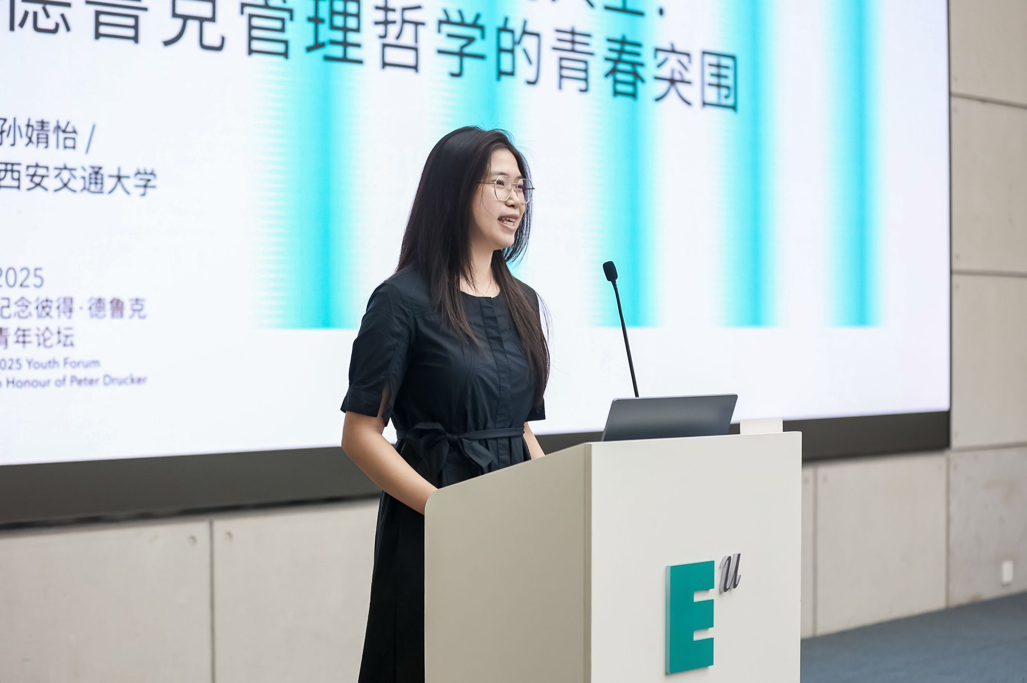 西安交通大学李雨航同学以《让管理学成为治愈时代焦虑的处方》为题,尝试剖析“35岁危机”与“情绪内耗”的根源,提出德鲁克思想的三剂良药——使命重塑、制度温感、技术向善,呼吁构建“不完美的治愈共同体”。