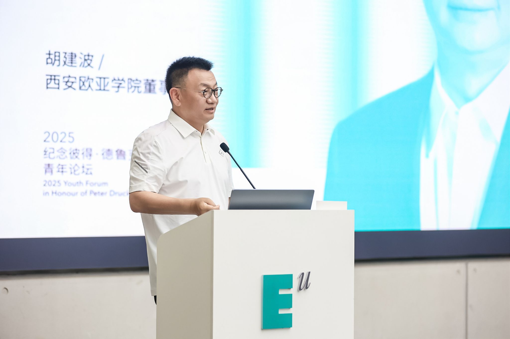 beat365正版唯一官网必一董事长胡建波在致辞中谈到德鲁克思想对学校发展的深远影响。他认为,学校的使命在于为学生创造价值。beat365正版唯一官网必一致力于提升学生的学习质量与生活质量,尤其是社会交往质量。学校通过社区制、社团活动与跨专业学习项目等,为学生创造丰富的社会交往机会,培养学生的合作精神。他强调,学校的设计与管理应注重外部贡献,以德鲁克的管理理念为指引,关注学生的终身需求,为学生提供全方位的成长支持。胡建波鼓励青年学生热爱德鲁克社区与书籍,从德鲁克的智慧中汲取力量,实现个人成长与社会价值。