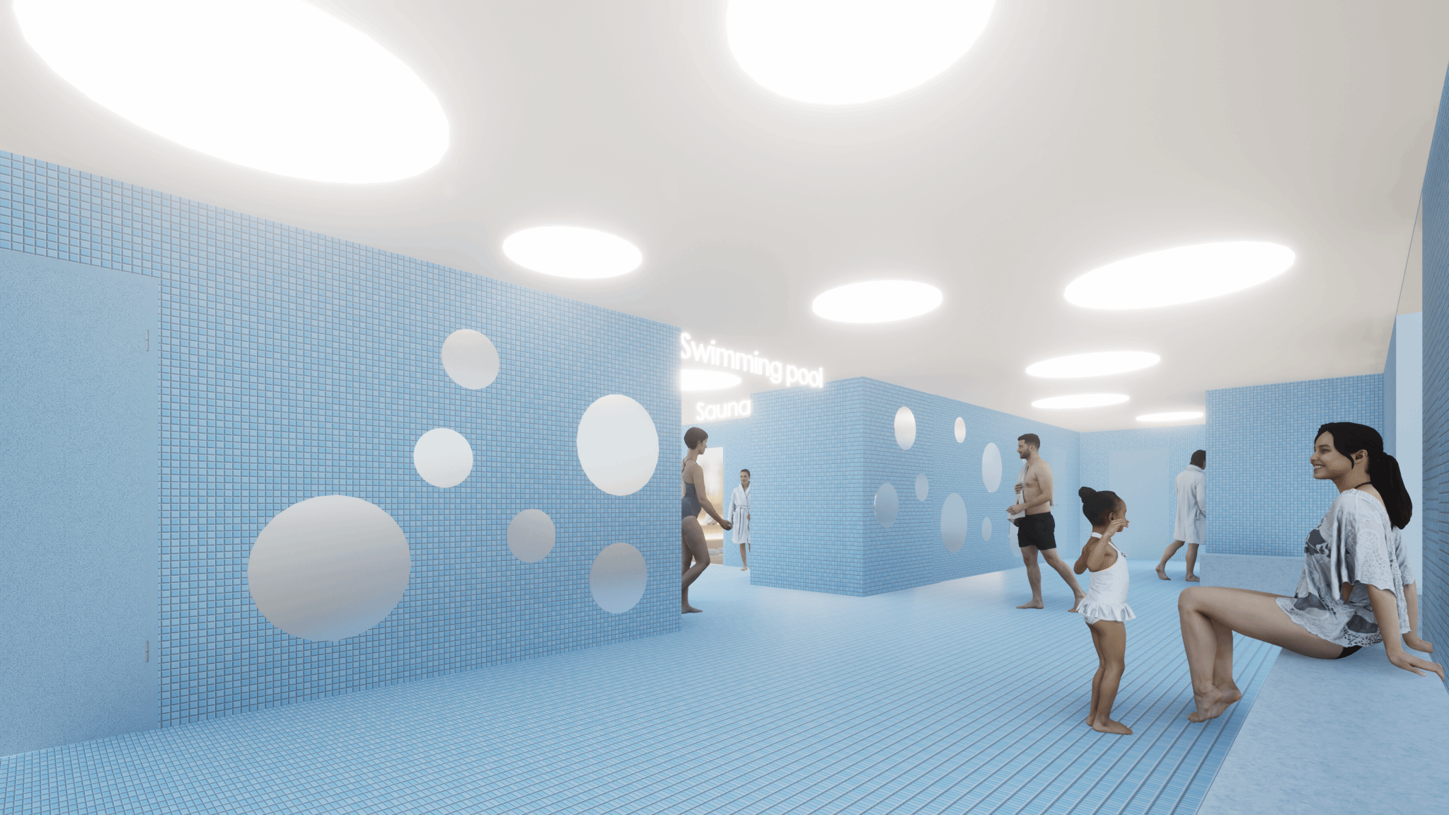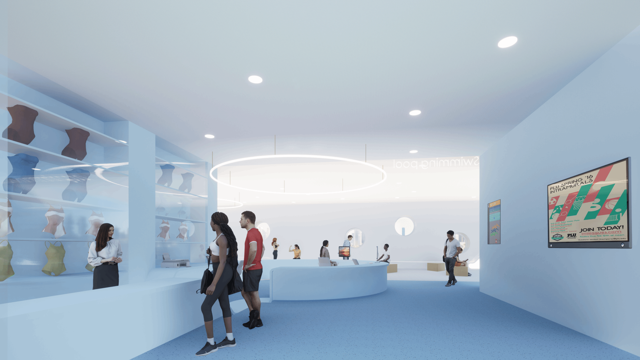 功能性方面,游泳馆保证各功能区在整个空间中合理布置,彼此通过精心规划的交通流线高效连接,确保使用者在建筑内的移动便捷且有序。同时游泳馆的隔音、排水、通风等功能设施,设计科学合理,满足人们在游泳过程中的需求。