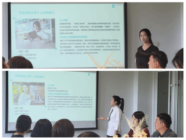会上,社区资助专员张倩向与会师生全面介绍了介绍了学校资助工作体系、社区资助工作开展情况,针对本次活动详细解读了资助宣传大使的遴选条件,遴选结果、工作职责,及其工作的重要意义。资助宣传大使主要负责开展学校资助政策宣讲、组织开展资助实践活动及校内外的公益服务,更好的推进社区资助工作的开展。
