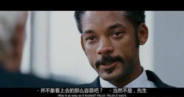 第一部分:坐公车(穷人必选)。Chris在生活中无疑是个失败者,他的妻子最终也选择离开他,他的家庭生活毫无保障,当他抱着儿子,躲在厕所中过夜时,留下的是挫败与愧疚的泪水。