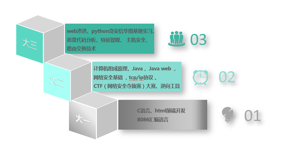 后来,我通过聆听一场场专业讲座,又参加相关了职业规划的培训,决定将逆向分析师定为自己的就业目标。我后来的一切行动都是围绕着这个目标进行的。有了目标,也就有了力量。”