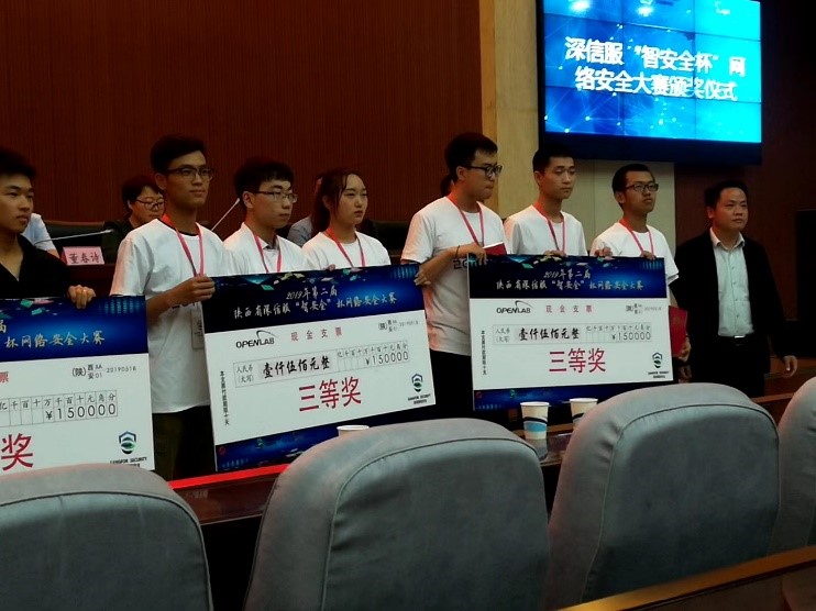 (2019年第二届深信服“智安全杯”网络安全大赛,右三为闫豪同学)