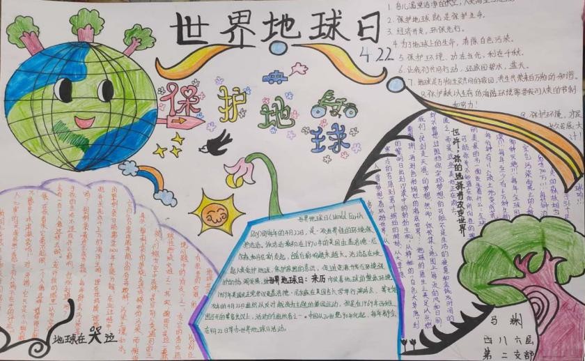 今年4月22日是第51个世界地球日,今年的主题是:“珍爱地球,人与自然和谐共生”。这是一项世界性的环境保护活动,唤起人类爱护地球、保护家园的意识,促进资源开发与环境保护的协调发展,进而改善地球的整体环境。在第51个世界地球日来临之际,第二青年社区分党委学生第一党支部开展主题为“珍爱地球,人与自然和谐共生”绘制手抄报与在线讨论的活动,呼吁大家保护地球家园,守护珍贵资源,传递人与自然和谐共生的理念。