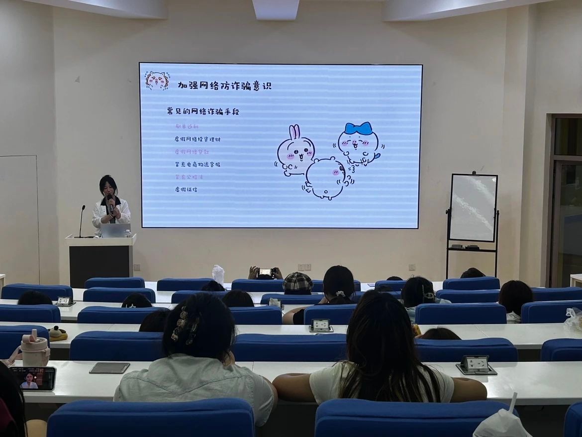 在数字化飞速发展的今天,网络诈骗手段层出不穷,严重威胁着同学们的财产安全和个人信息安全。班会上,辅导员们告诫同学们“世上没有免费的午餐”,提醒大家时刻保持清醒的头脑,切勿轻信陌生人的花言巧语。尤其是涉及金钱交易、投资理财等敏感领域,更要提高警惕,谨慎对待。