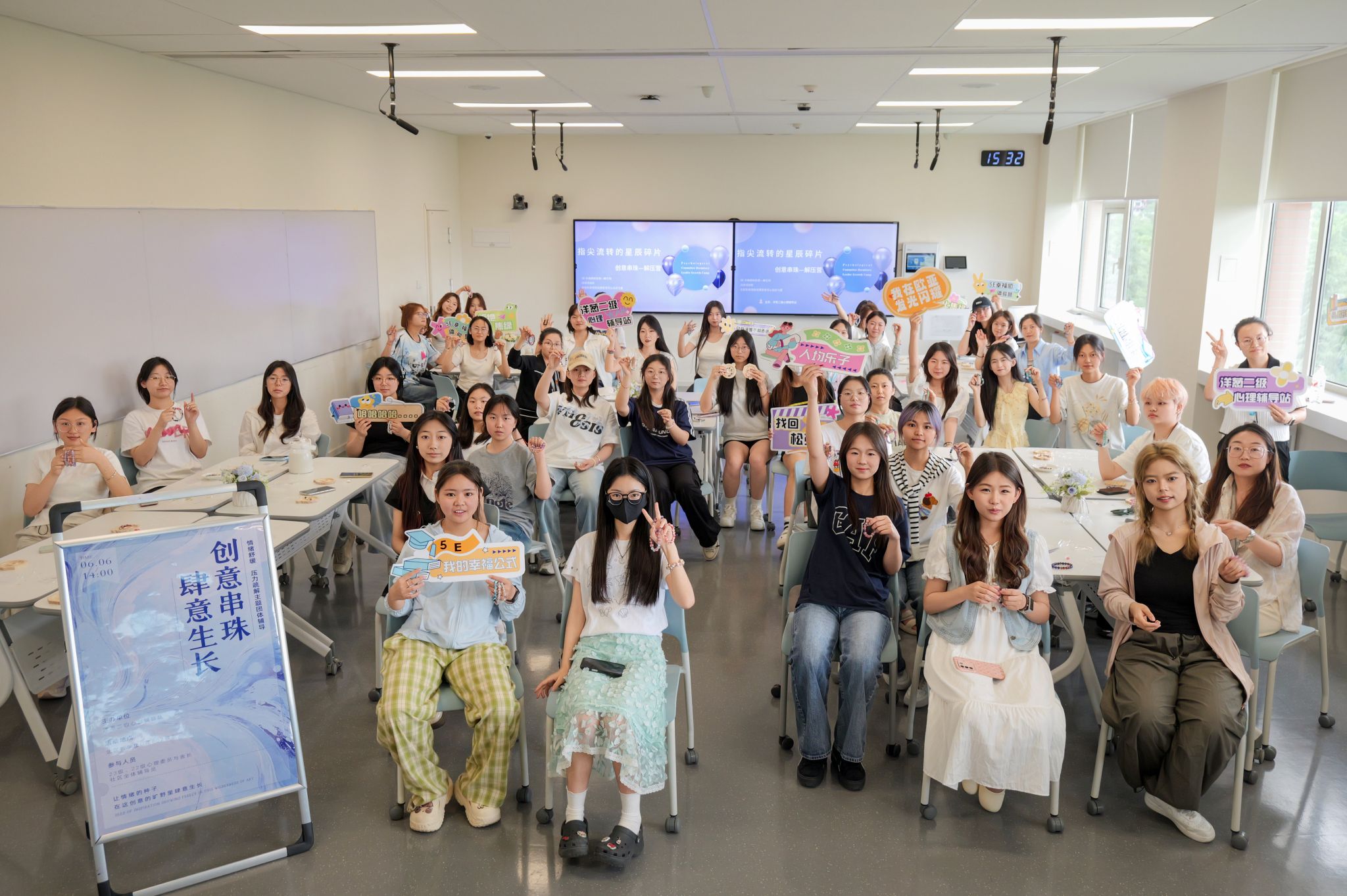 阳光漫过的北D502教室,光柱里浮尘如金粉起舞。长桌上贝壳盘中摆放着各色珠光的琉璃——这不是珠宝展台,而是洋葱二级心理辅导站发起的师生解压沙龙。当穿针引线替代键盘敲击,当辅导员与心理委员并肩而坐,一场沉浸式的手作仪式正悄然颠覆现代焦虑。唯余指尖与材质的私语,让心神在珠玉碰撞的脆响中徐徐着陆。正如积极心理学所印证的,重复性手工可激活大脑α波,让皮质醇水平直降28%。解压,原是一场温柔的手部冥想。解压的智慧,本就在人间烟火深处。