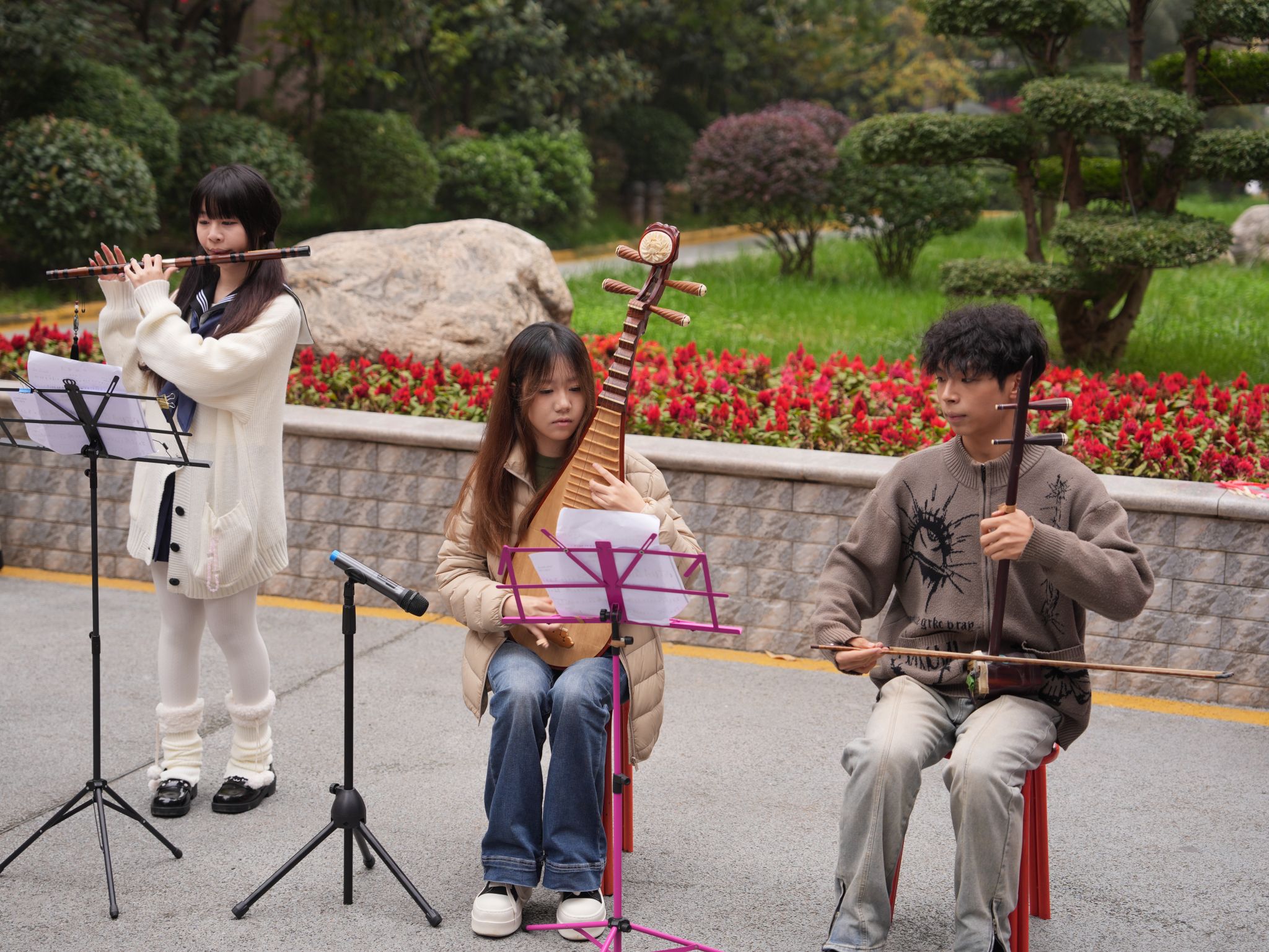 表演环节,一键开启 “神仙打架” 模式,全程高能无冷场!吉他、二胡、竹笛、琵琶、电子琴等乐器竞相登场,《如愿》、《送我一只玫瑰花》、《梁祝》、《倔强》等经典曲目先后亮相。当现代音色撞上古风旋律,老经典也玩出了新花样,爷爷奶奶瞬间转换为为音乐疯狂的 “气氛组”!