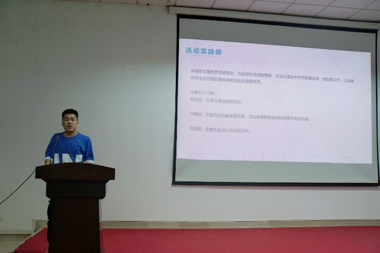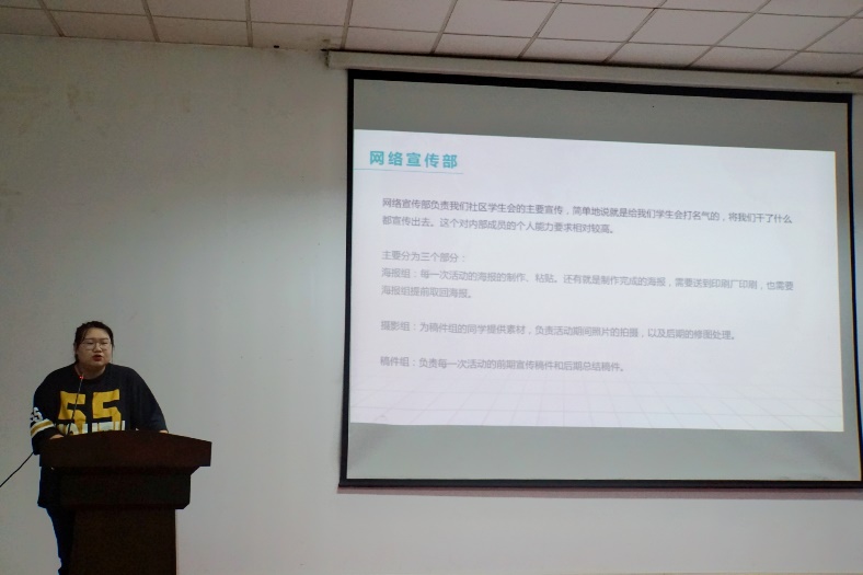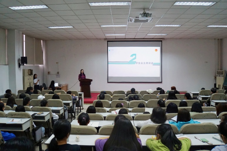 大会第一项,由学生会主席闫雪芮上台讲话,