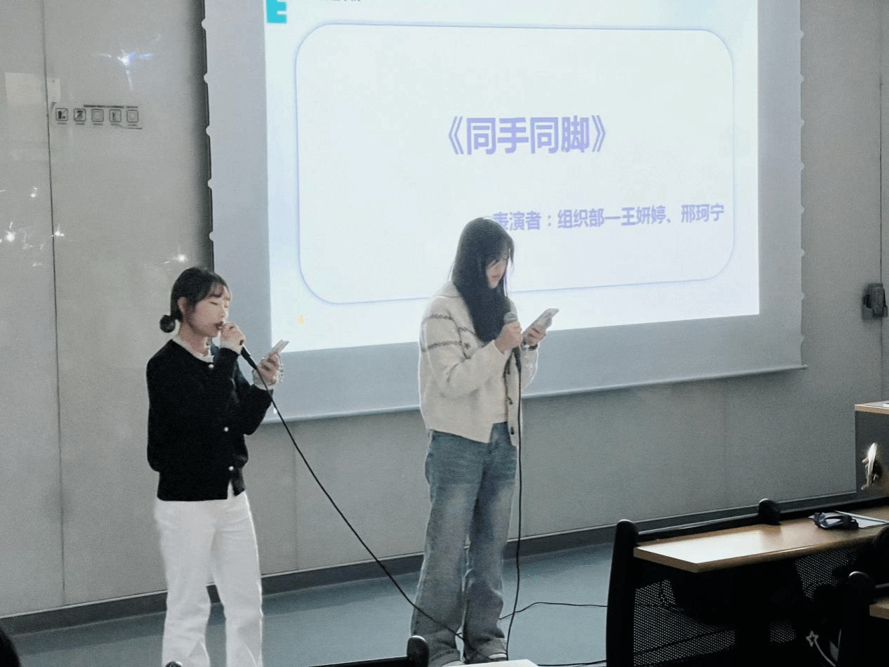 组织部王妍婷、邢珂宁合唱《同手同脚》,温柔旋律萦绕耳畔,诉说着团学未来“并肩同行”的约定,这份青春里的并肩承诺,是薪火相传中最动人的注脚。