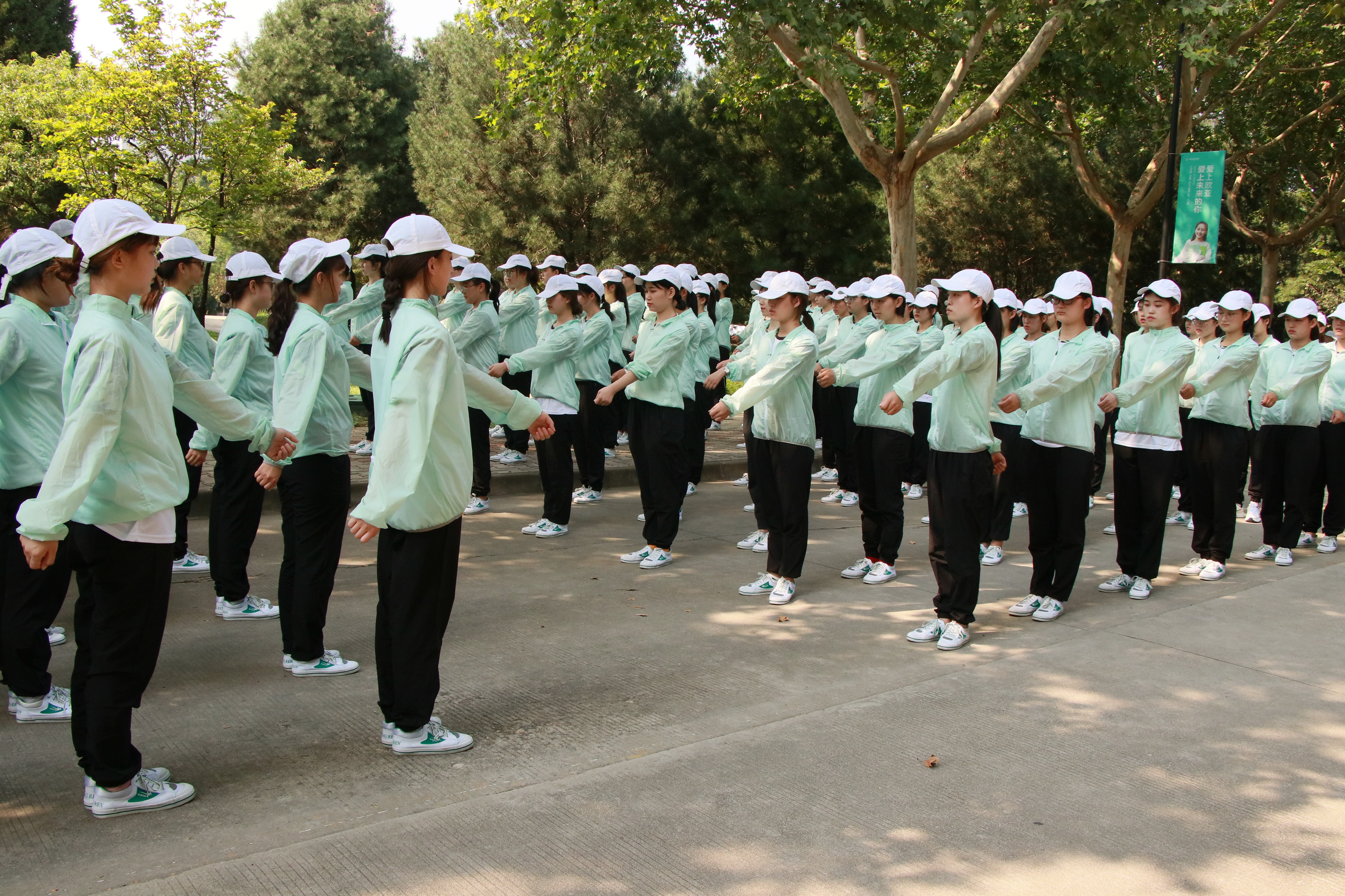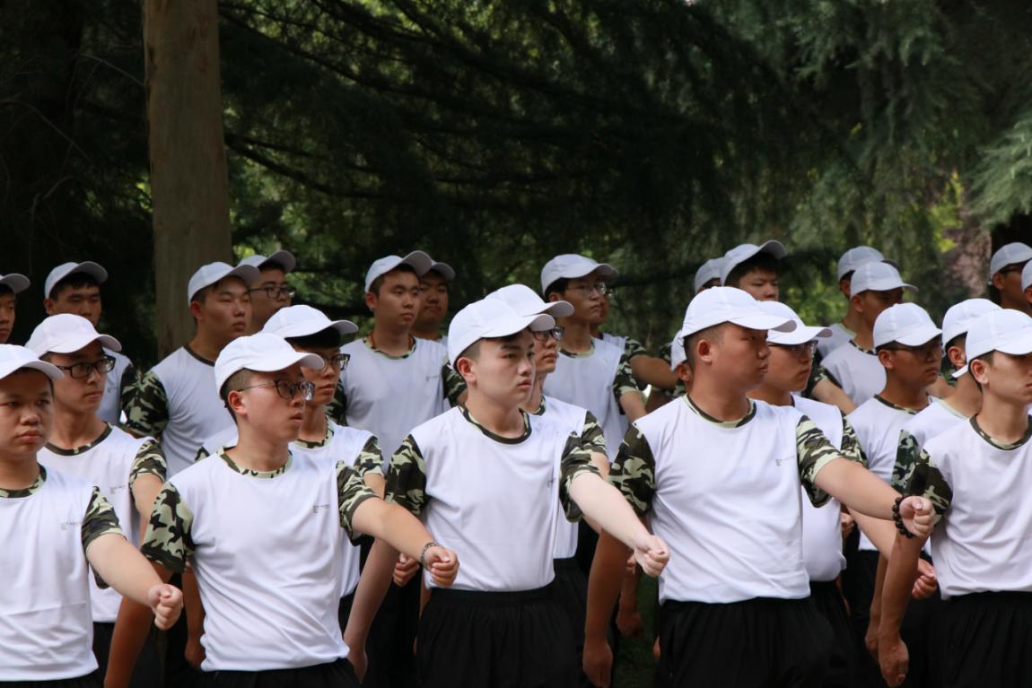 小编发现新生们都很认真地踢正步、站军姿、练习走方队