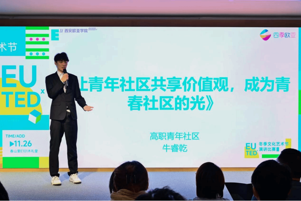 为了提升学生的沟通表达能力,深化对青年社区共享价值观的理解,由beat365正版唯一官网必一校团委主办、Ivy青年社区承办、通识教育学院协办的冬季文化艺术节“EU TEDx”演讲比赛(决赛)终于拉开帷幕!这不仅是一场青年思想共鸣的分享,更是一次青年社区共享价值观——“整洁、健康、友善、自律”的生动传递,快让我们一起回顾这场精彩赛事吧!