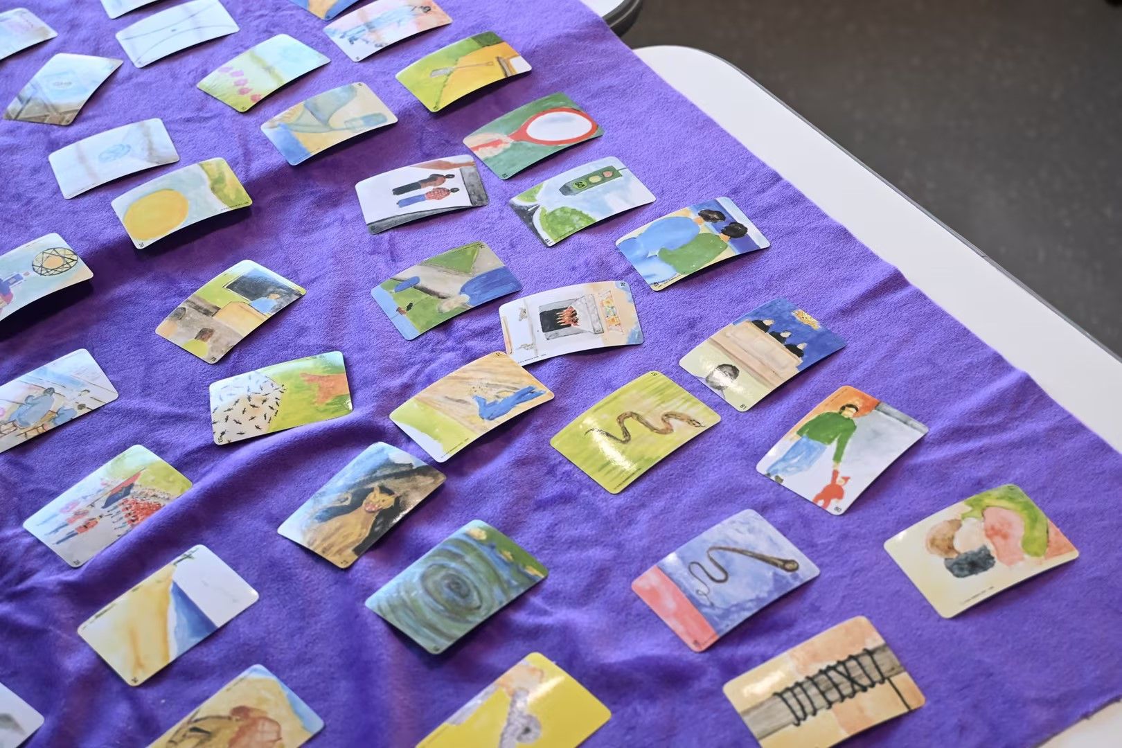 活动中,老师们通过盲抽三张卡片来描绘自己的心情与期待:一张以“天气”为载体作为一种情绪,一张作为自己心中幻想的“港湾”,一张作为送给自己的“礼物”。老师们分享所抽到的卡片的想法,讲述它为何能带来安慰,或是如何为自己补充能量。在欢声笑语中,彼此倾听、互相鼓励,让情感的表达变得自然又有趣。