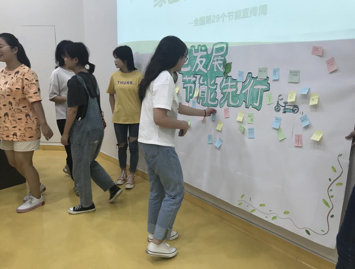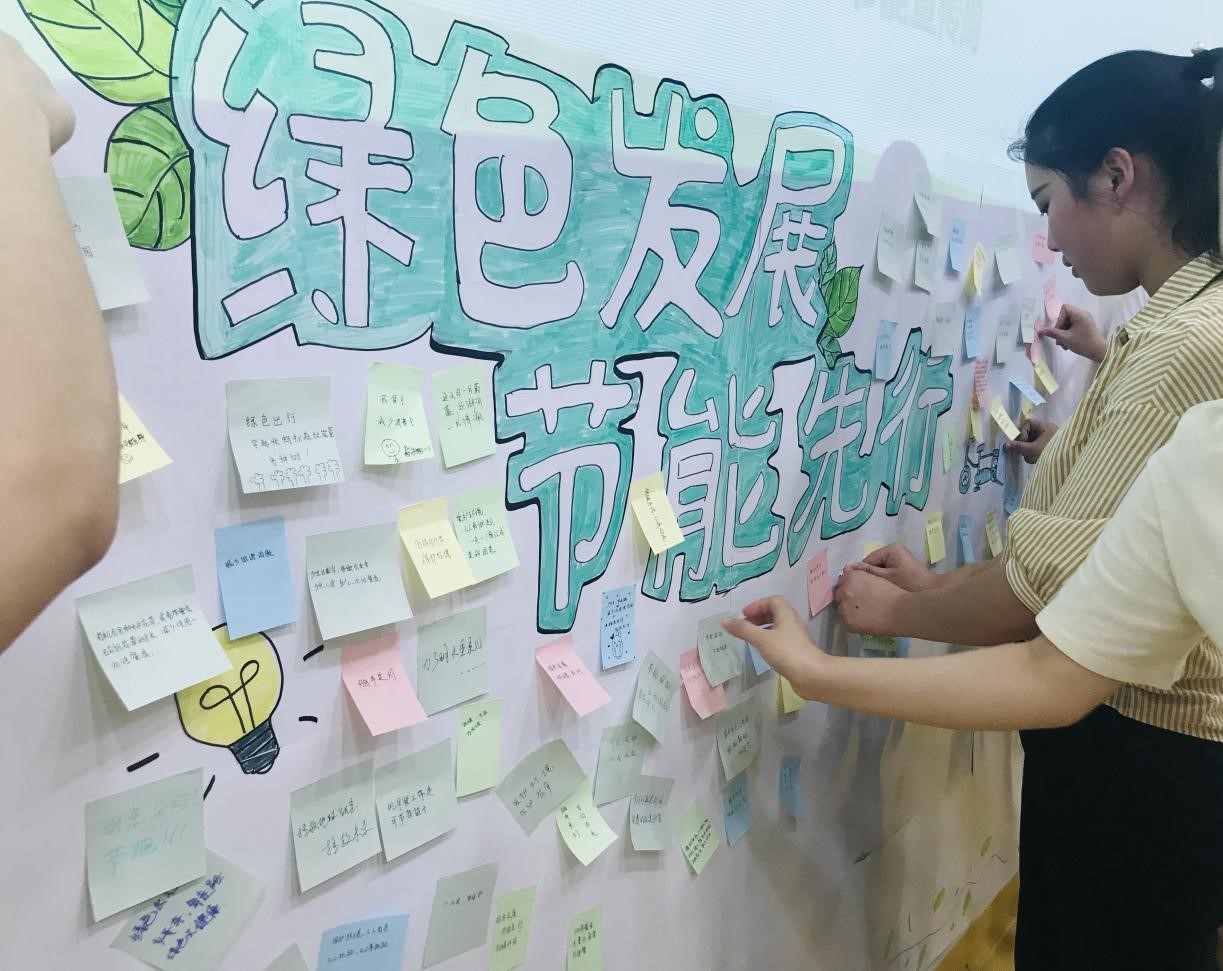 第二青年社区分党委积极倡导同学们做好以“绿色发展,节能先行”为主题的能源资源节约和生态环境保护宣传活动,活动围绕“营造绿色节能新风向”而展开,同学们积极响应节约活动号召,并在“绿色发展,节能先行”倡议书纸板上,用便利贴写下自己在之后的学习生活中为践行节能,反对浪费力所能及的做法:“平时少点外卖,逛超市自己拿袋,一点一滴,从我做起”“大自然给予我们美好的生活,我们回报她一片绿色,绿色行动,人人有责”“每天多走几步路,蚂蚁森林能种树”“节约,节能,节节相关;环境,环保,环环相扣”。同学们为节能发出倡议,为环保付出实践,争做节能、绿色生活的响应者、自觉者和先行者。
