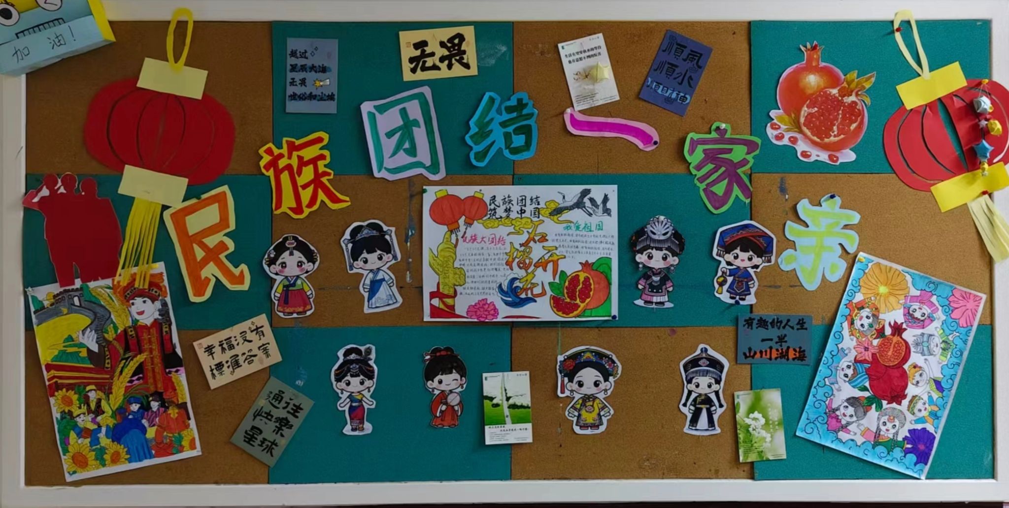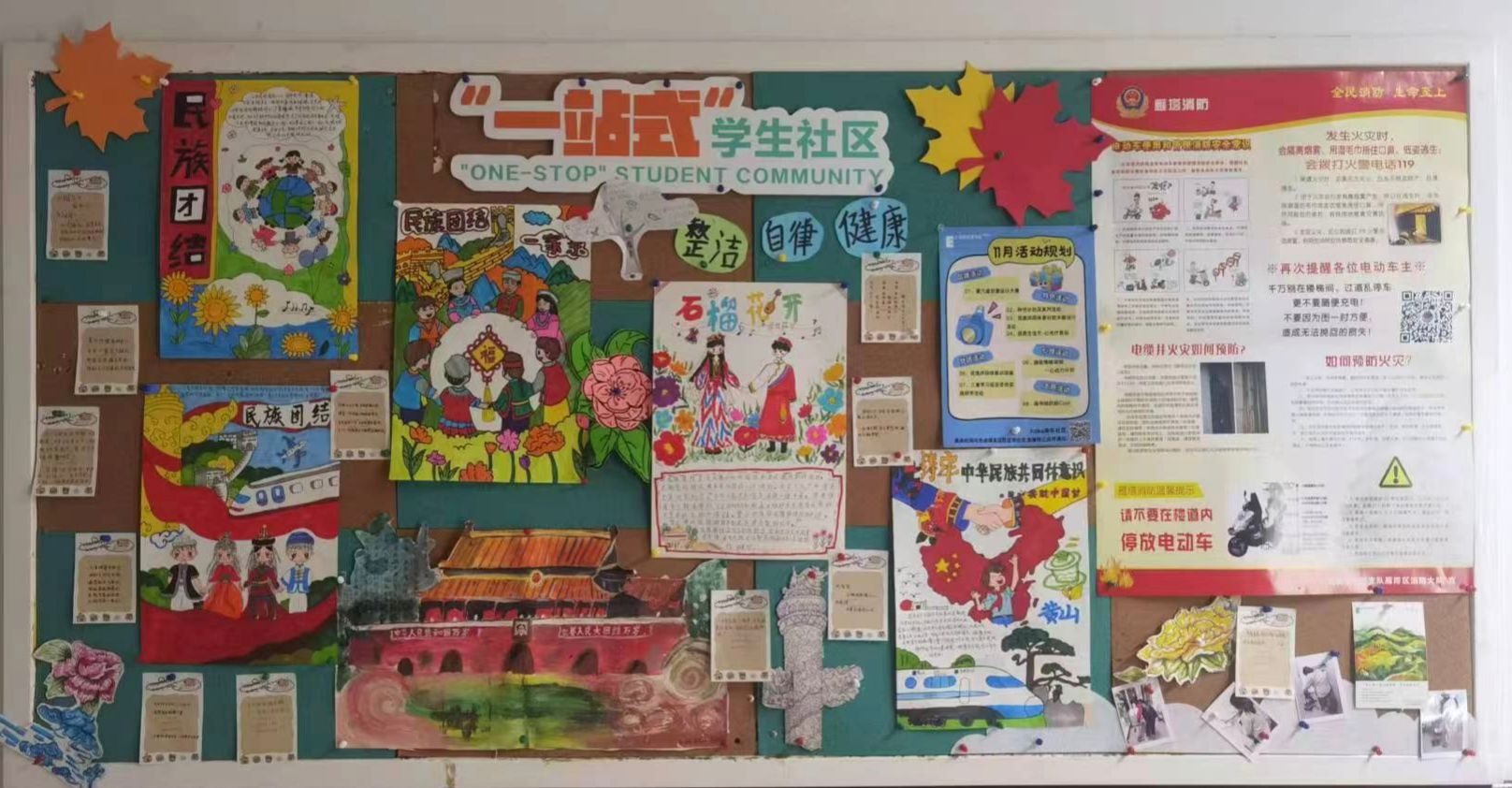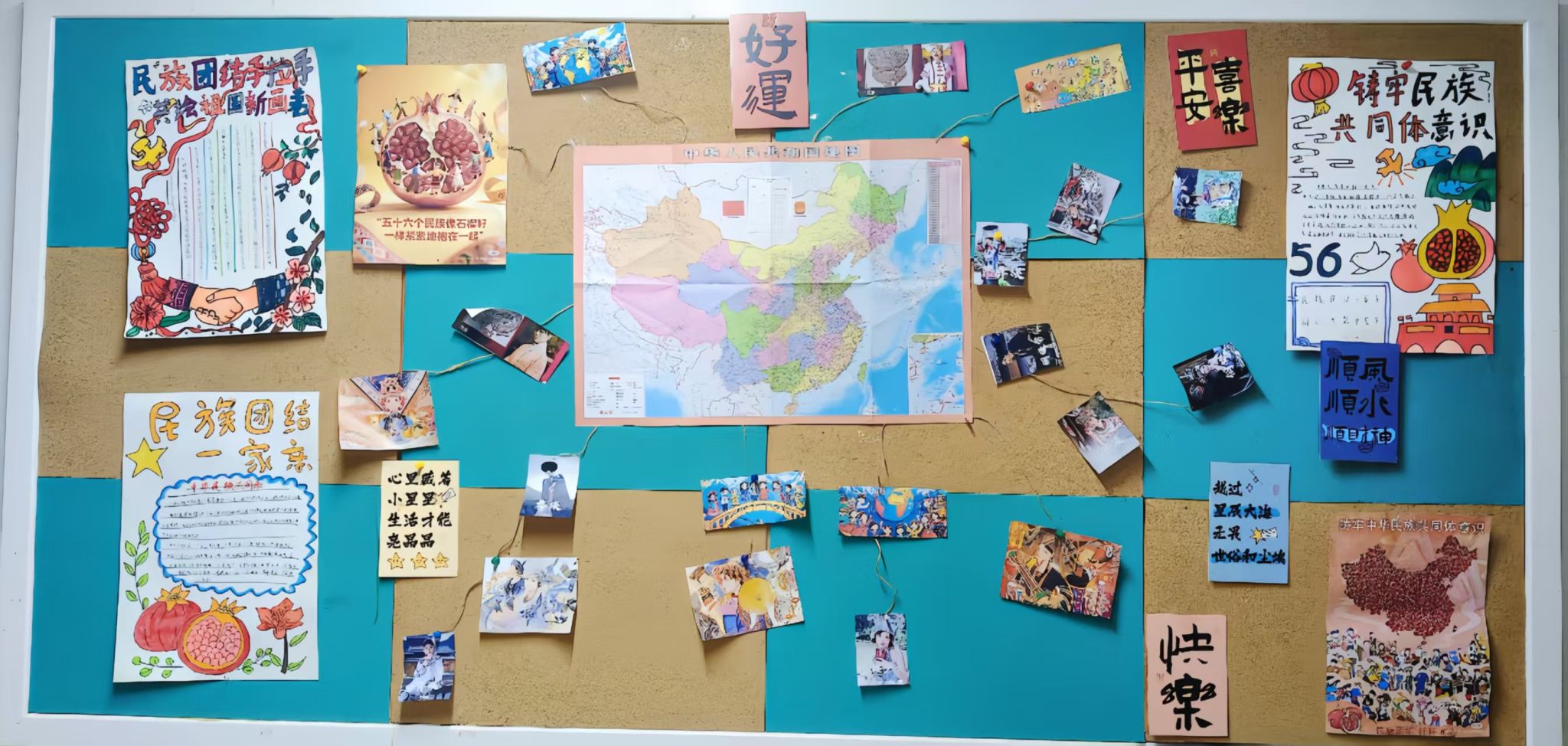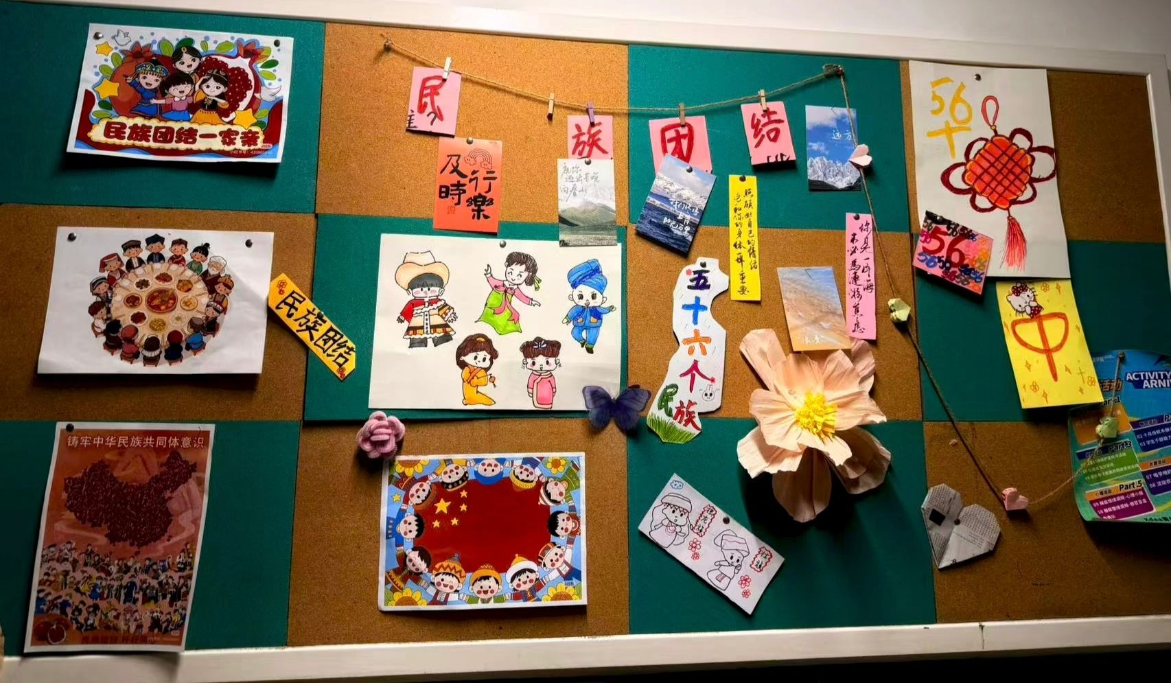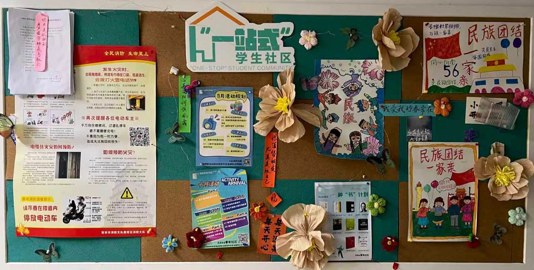 Xdea青年社区以“民族团结,民族共同体意识”为主旨,把促进民族团结写在软木板上——这里不见冗长的讲义,唯有五十六种色彩同时点亮的瞬间。放眼望去,棕色衬底之上,红色炽烈,绿色清新,蓝色澄澈,各色交织成圆,犹如涟漪荡漾,将“我们是一家人”的暖意,轻轻沁入每个人心底。