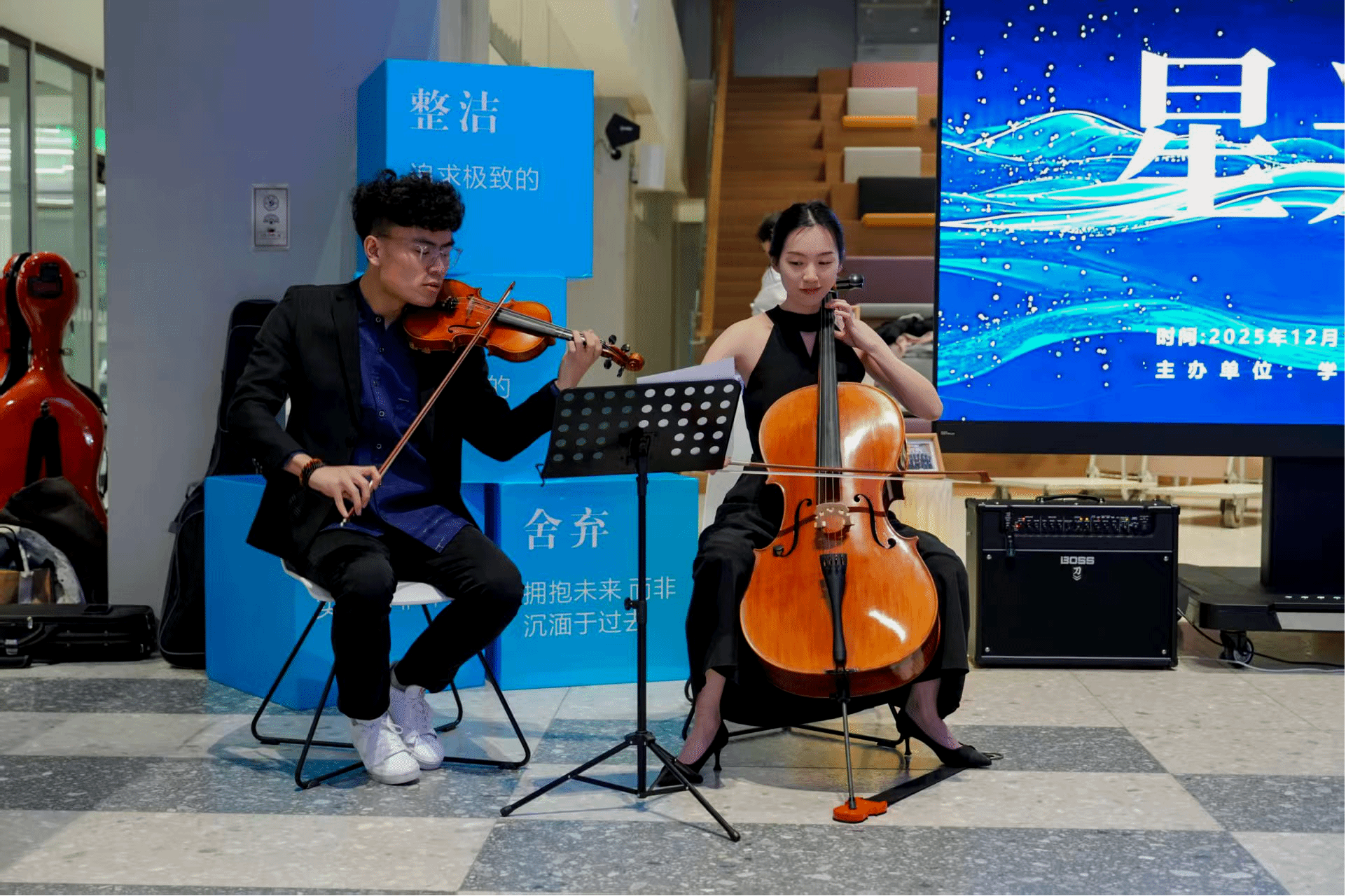 活动尾声,吉他社成员携手同学们与辅导员共同唱响《想去海边》。舞台上的星光为获奖者闪耀,而今夜的光芒,从来不止属于聚光灯下的他们——校园的每一个角落,都有默默钻研的同学、悉心陪伴的辅导员,每一个为梦想踏实前行、为他人温柔付出的身影,都是这片校园里不可或缺的“星光”。至此,本次星空主题表彰典礼圆满落下帷幕!