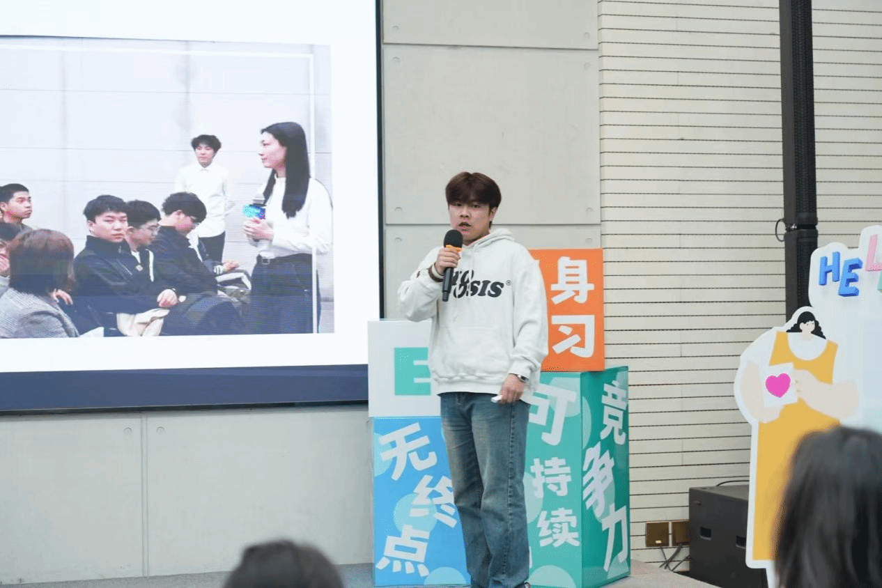 廖道轩同学用轻松幽默的脱口秀分享成长,讲述了自己从内向到投身志愿服务与学生工作的转变。在师友的鼓励与包容中,他勇敢突破、承担责任,逐渐找到自信与方向。他的故事,正是一场关于成长、陪伴与发光的温暖见证,让青春在坚守与热爱中绽放耀眼光芒。