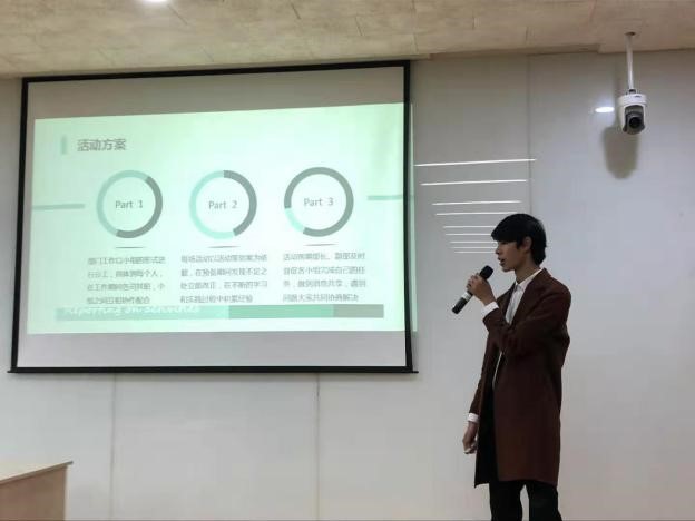 组织部部长吴芝彤首先介绍了以雷锋精神为代表的积极精神底蕴,随后介绍了本学期将要开展的团课工作。表明新学期要促进学习工作精神的传播,同时希望学生会能够携手同心,做大做强。