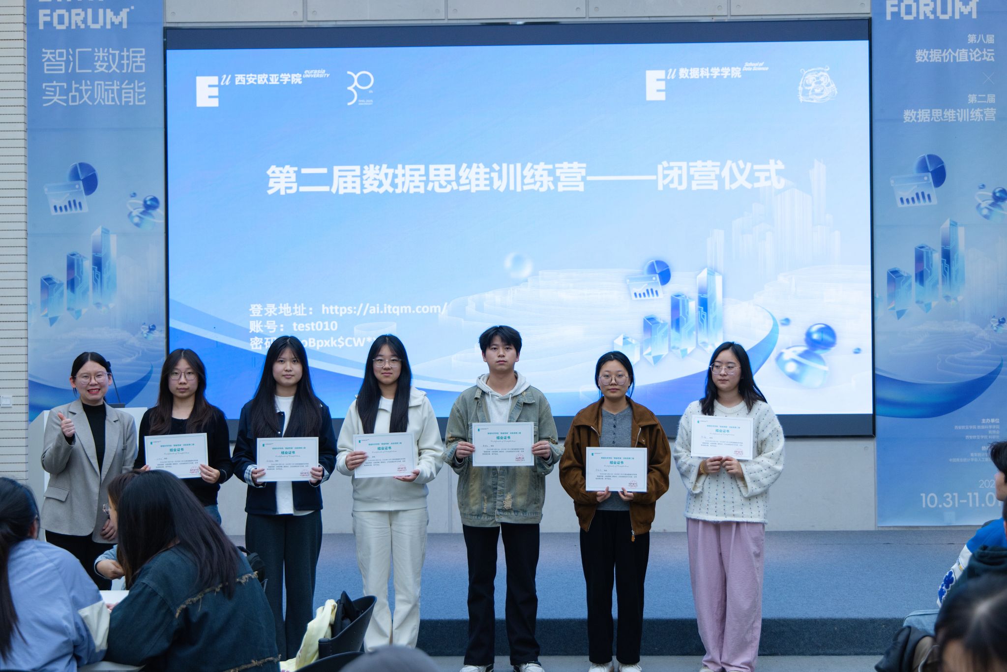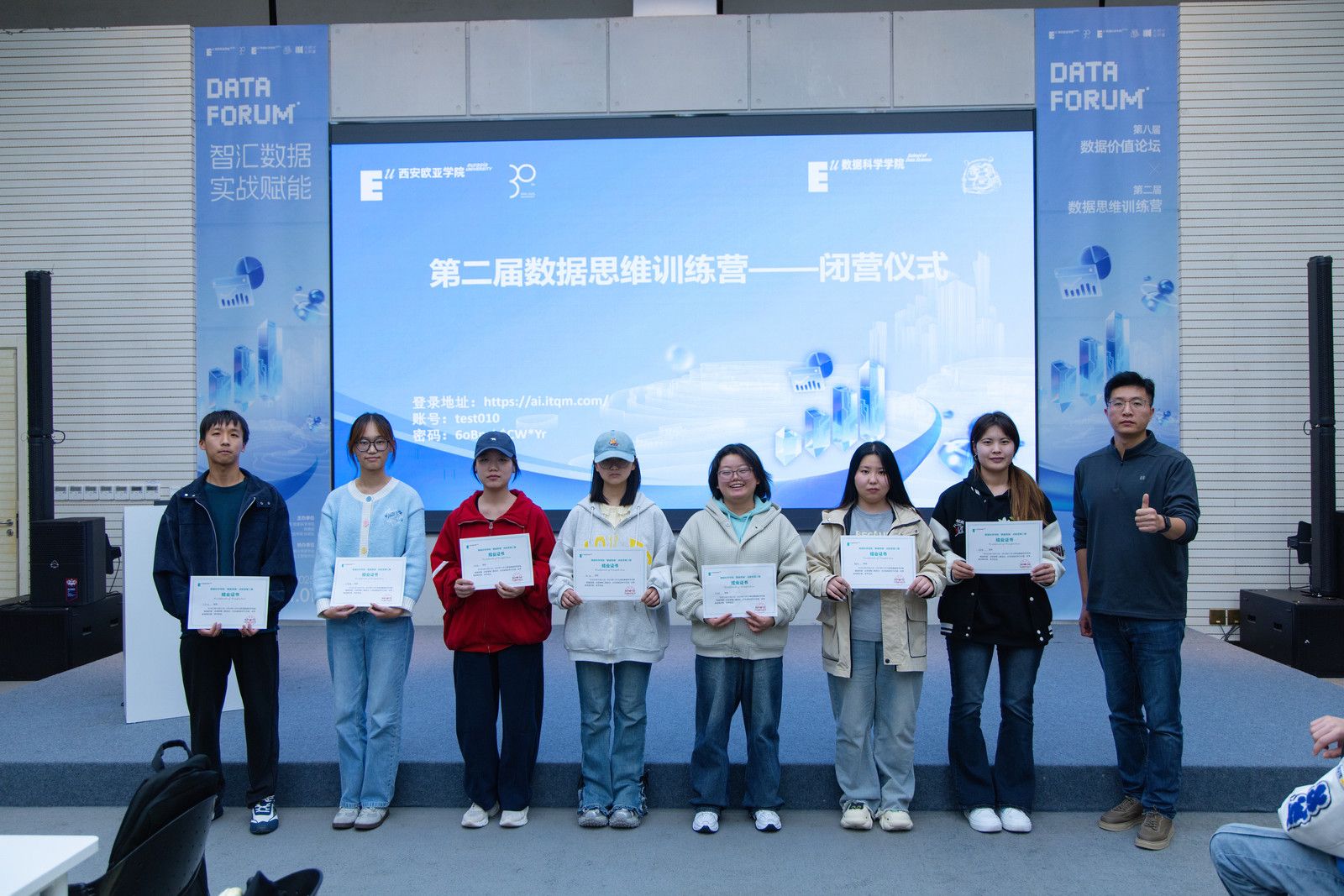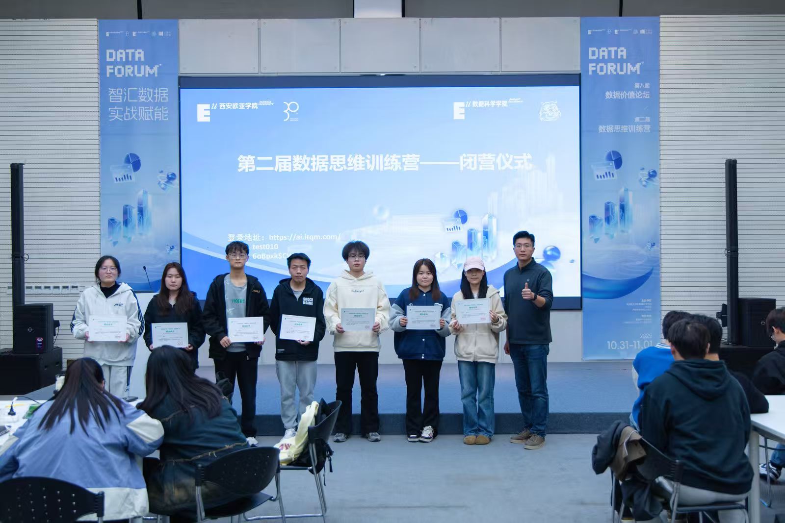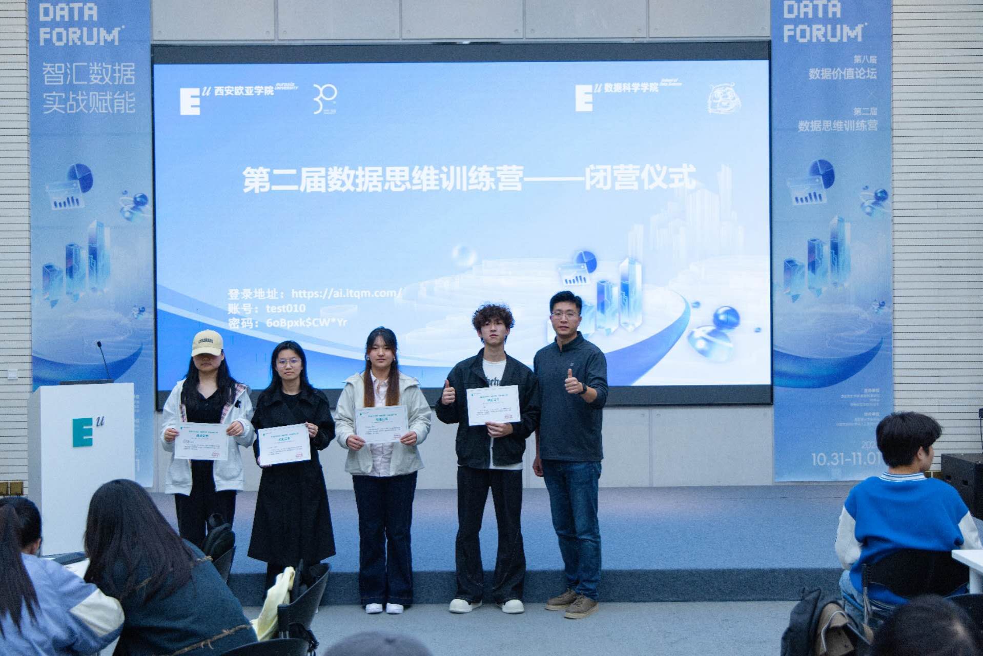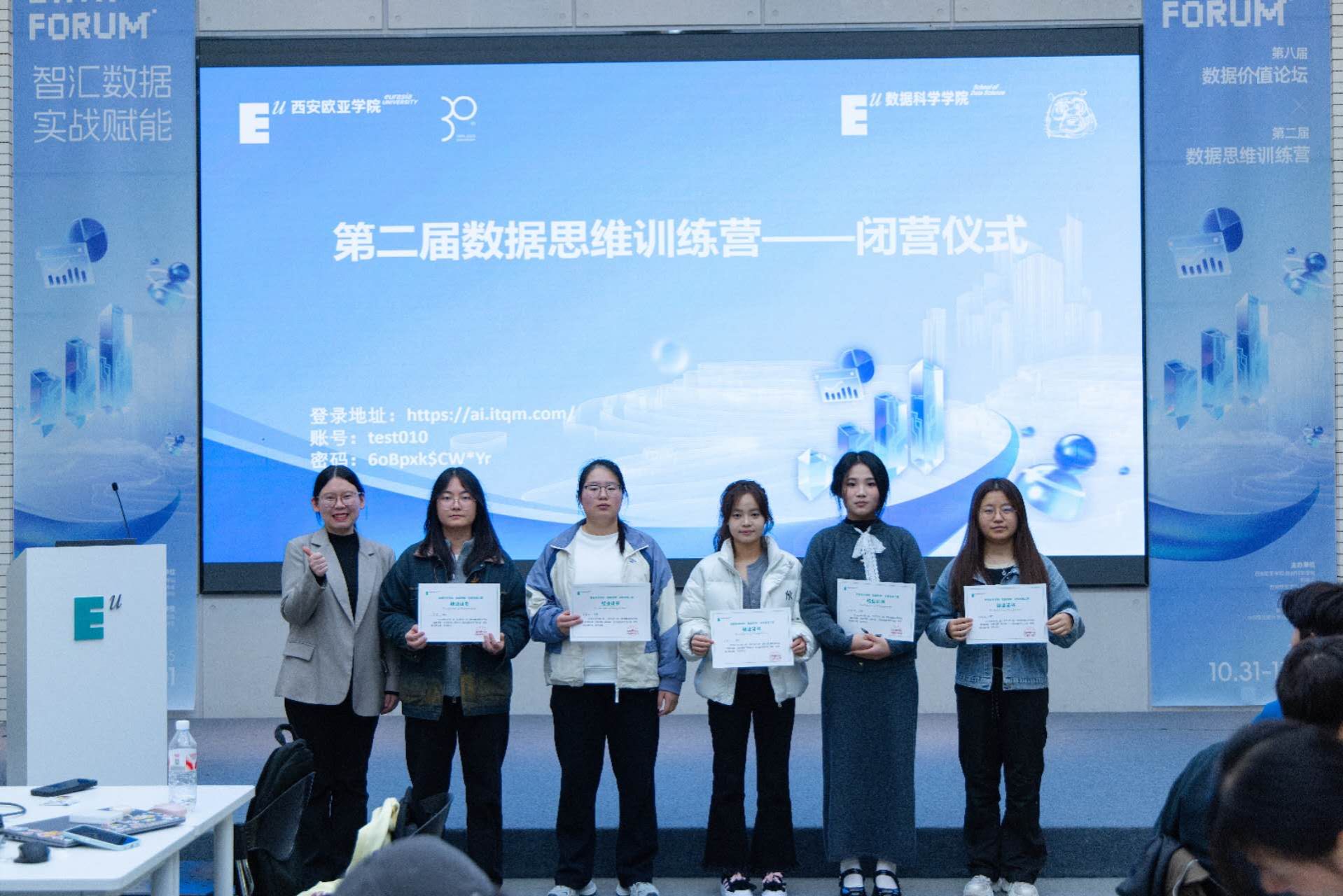 最后,数据科学学院院长助理孟妍与教师史博文颁发结业证书,鼓励大家将训练营所学转化为长期竞争力,在数据领域持续深耕。至此,第二届数据思维训练营闭营仪式圆满结束,而学生们的实战成长之路,才刚刚启航。