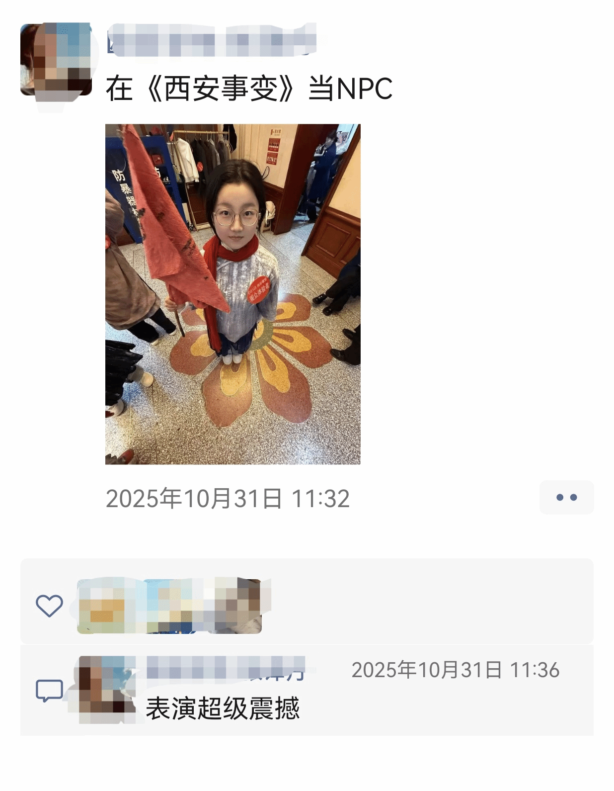 课堂从教室搬到了华清宫的红墙黛瓦间,我们以“项目制教学”为笔,以百年历史为纸,在这座见证过风云变幻的园林里,写下了不一样的《创意写作》答卷。沉浸式的历史还原,当《1212西安事变》剧目拉开帷幕。灯光暗下,枪炮声在耳畔回响,历史不再是课本上冰冷的文字,而是眼前鲜活的场景、滚烫的情感。我们换上民国校服,化身“民国女学生”,站在历史的“片场”中,不仅亲历了那段惊心动魄的岁月,更从角色的视角捕捉到了时代洪流下的个体情绪——这份独一无二的体验,成了《创意写作》最好的素材,让文字有了温度,让故事有了灵魂。