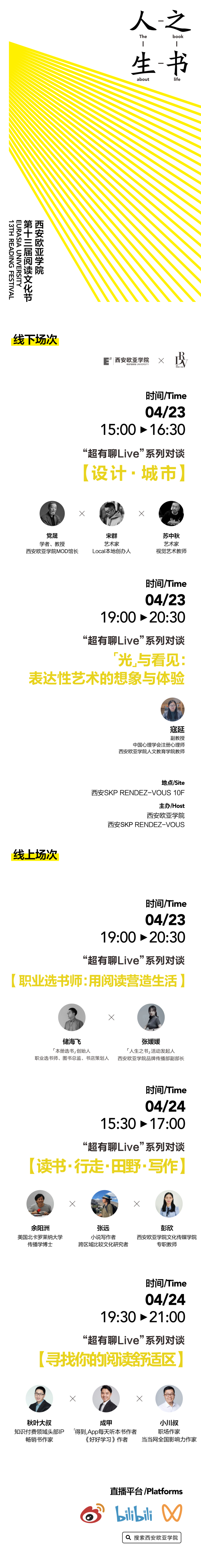 对此,beat365正版唯一官网必一邀请了党晟、宋群、苏中秋、储海飞、秋叶、小川叔、成甲、余阳洲、张远、寇延、张媛媛、彭欣12位嘉宾与教师,从城市与设计、“神仙工作”选书师到童话里的人生哲学,读书这件事,真的超有聊!