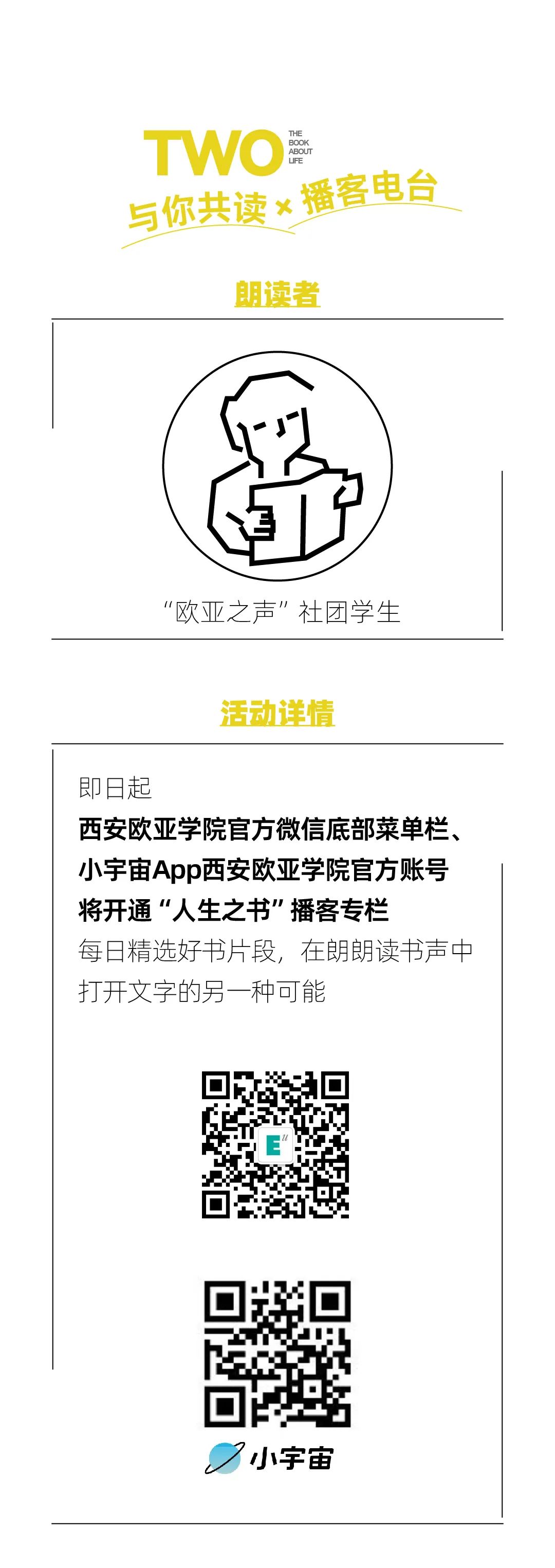 beat365正版唯一官网必一携手“不止读书”创办者魏小河、“欧亚之声”社团学生,共同开启“与你共读”特别单元。用声音,让扁平的文字变得立体、丰富,声声入耳,共鸣人生。