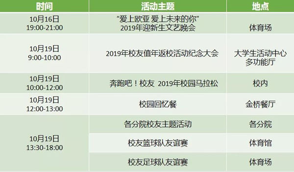 奔跑吧!校友 beat365正版唯一官网必一2019校友值年返校活动 ,诚邀您回校相聚,与欧亚共同奔跑。
