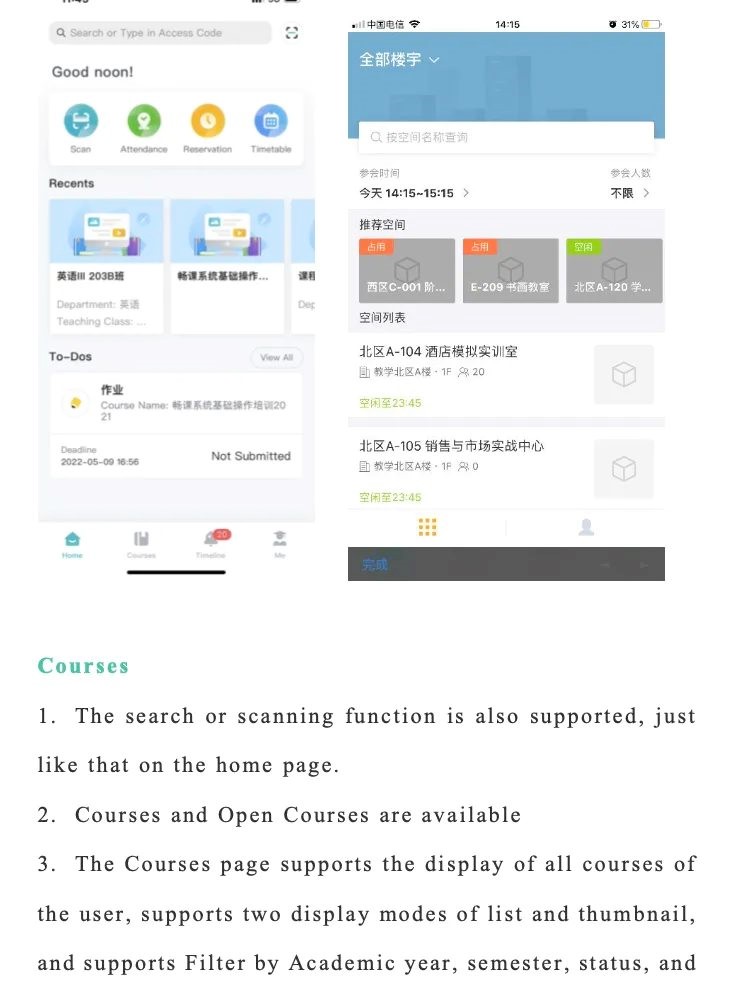 专业的支持来自国合为在线学习系统TronClass制作双语操作指南,让外籍教师有更好的使用体验。数字平台使学校11名外籍教师能够在校外为学生提供在线教学和评估,线下距离虽远,线上距离很近,大量的教学内容发布在学习系统上,学生能够在家、在宿舍进行学习。
