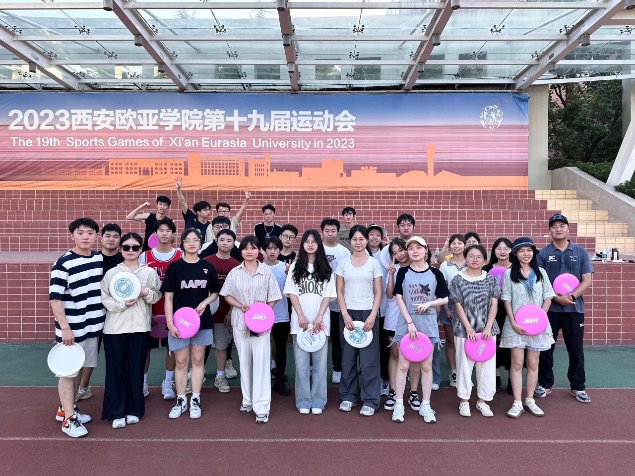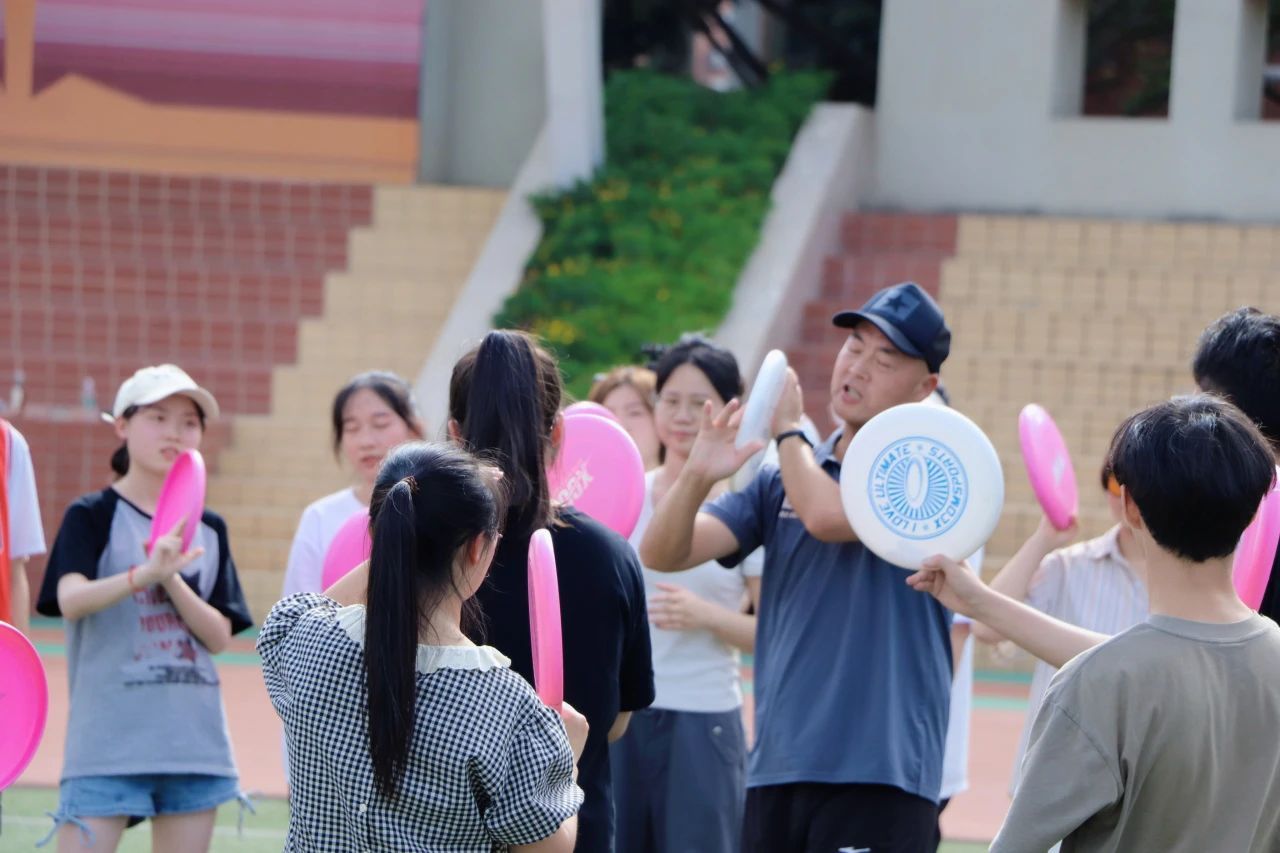 即使身处炎炎夏日,同学们面对训练和比赛仍展现出极高的配合度和积极性。飞盘训练不仅能够锻炼身体,培养团队合作精神,同时通过让同学们互相协作和配合,展现与体会到团队协作的力量和快乐。