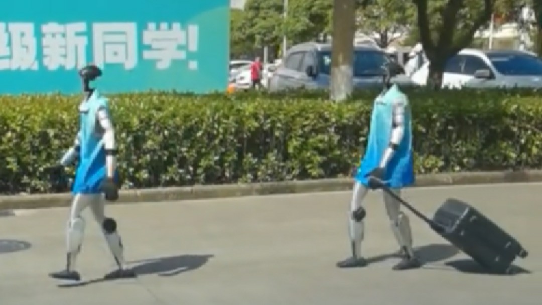 青蜂侠丨 广西一高校安排“机器人学长”迎新 帮助新生扛行李